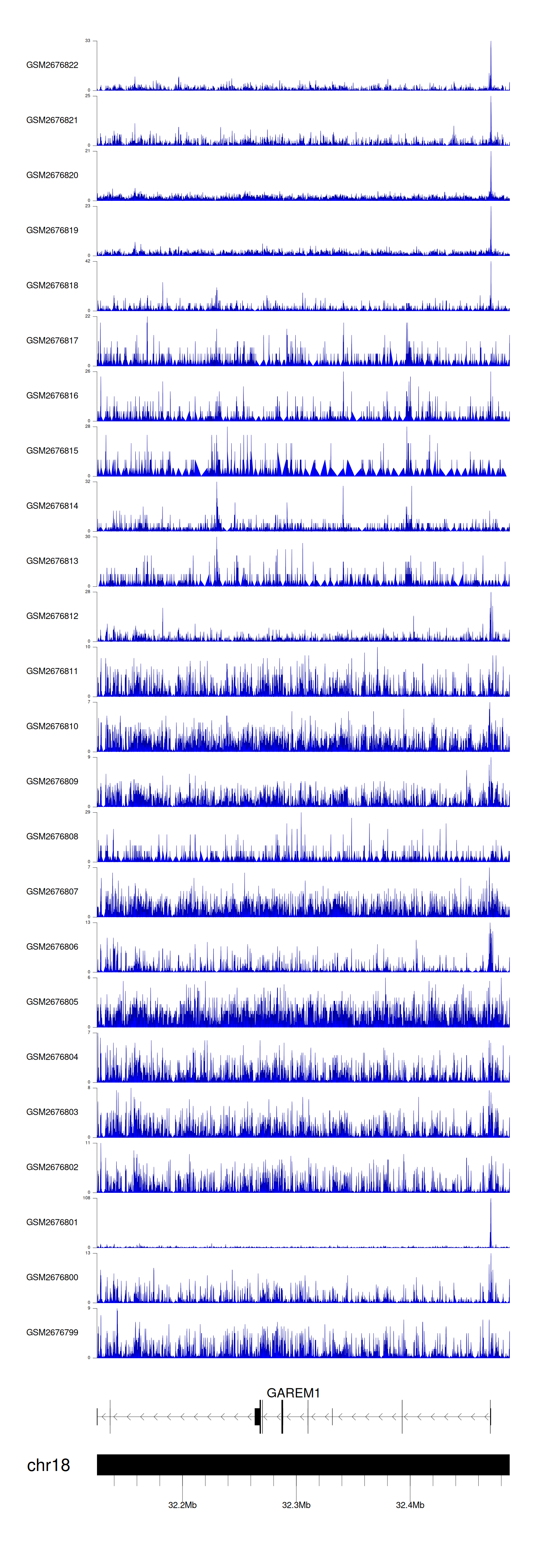 > Dataset: GSE165703 - GAREM1 peak across samples
