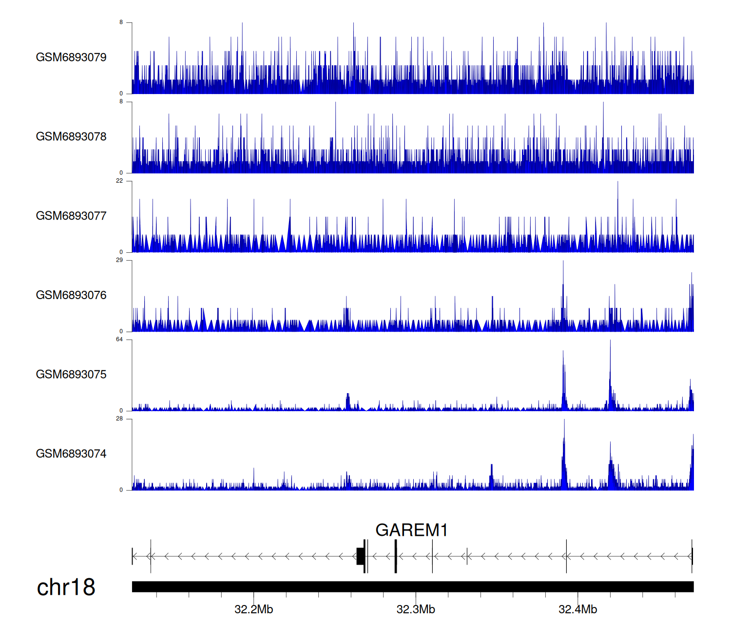 > Dataset: GSE211651 - GAREM1 peak across samples