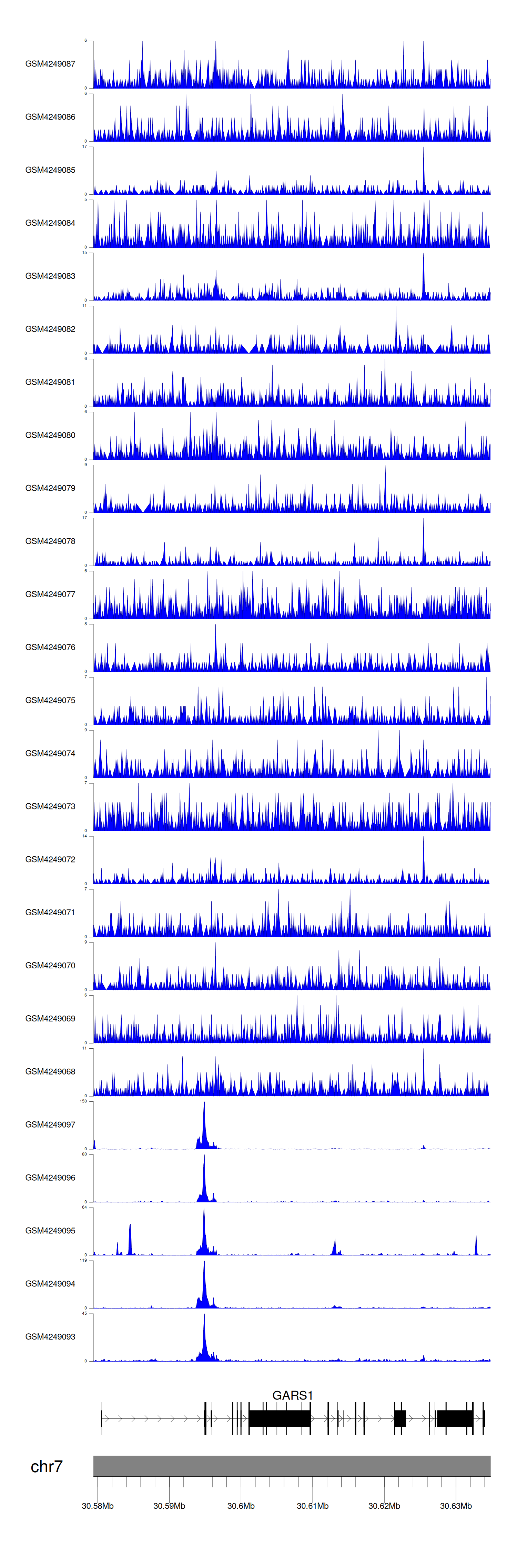 This gene encodes glycyl-tRNA synthetase, one of the aminoacyl-tRNA synthetases that charge tRNAs with their cognate amino acids. The encoded enzyme is an (alpha)2 dimer which belongs to the class II family of tRNA synthetases. It has been shown to be a target of autoantibodies in the human autoimmune diseases, polymyositis or dermatomyositis. Two transcript variants encoding different isoforms have been found for this gene. [provided by RefSeq, Oct 2015] |