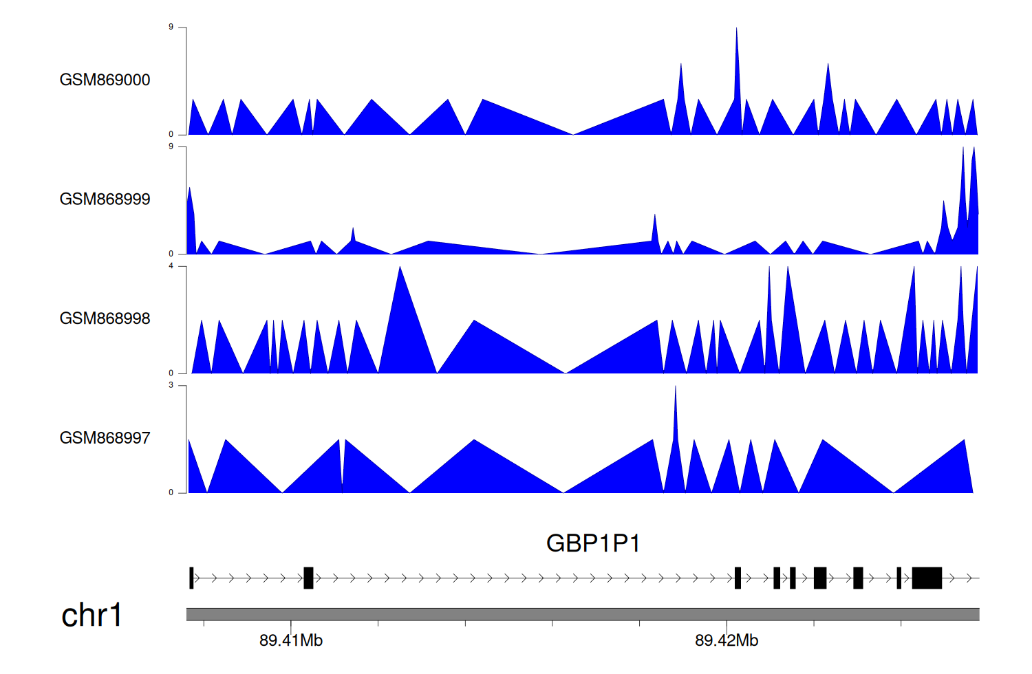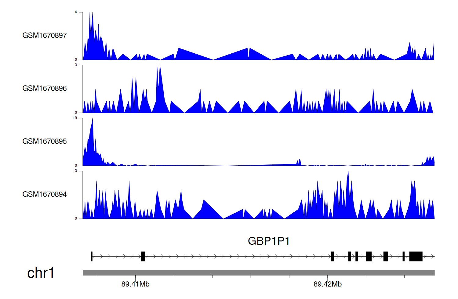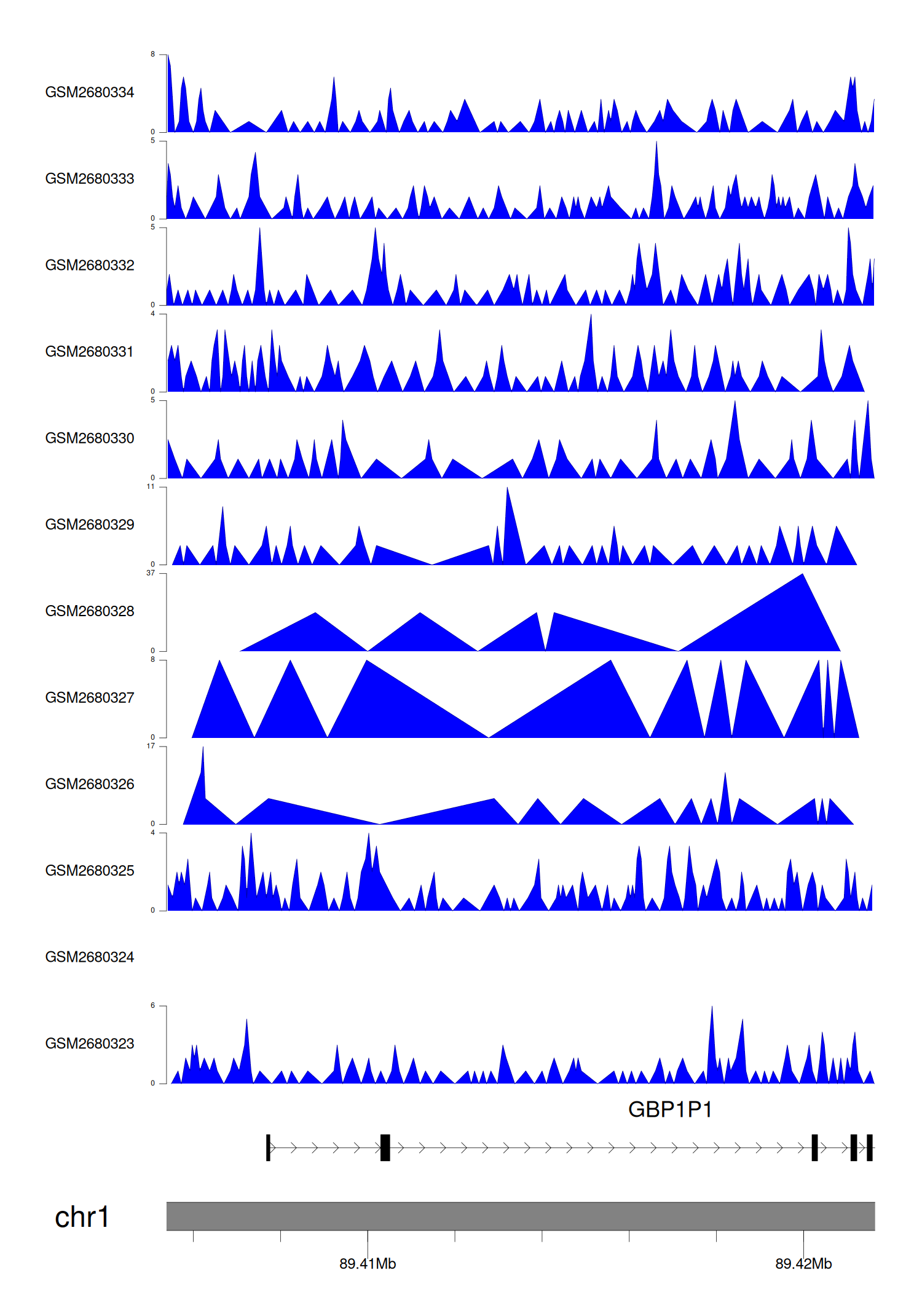 > Dataset: GSE68402 - GBP1P1 peak across samples