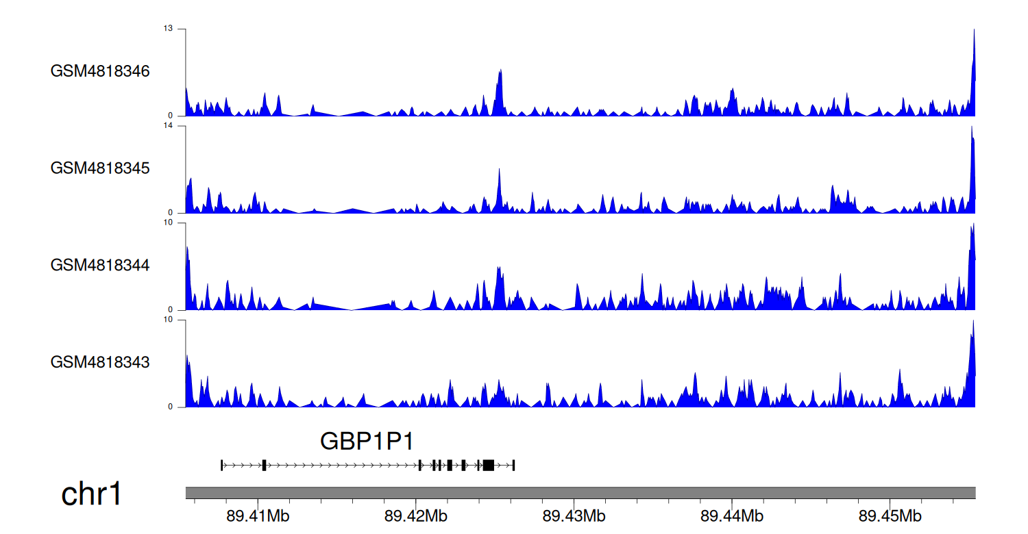 > Dataset: GSE131257 - GBP1P1 peak across samples