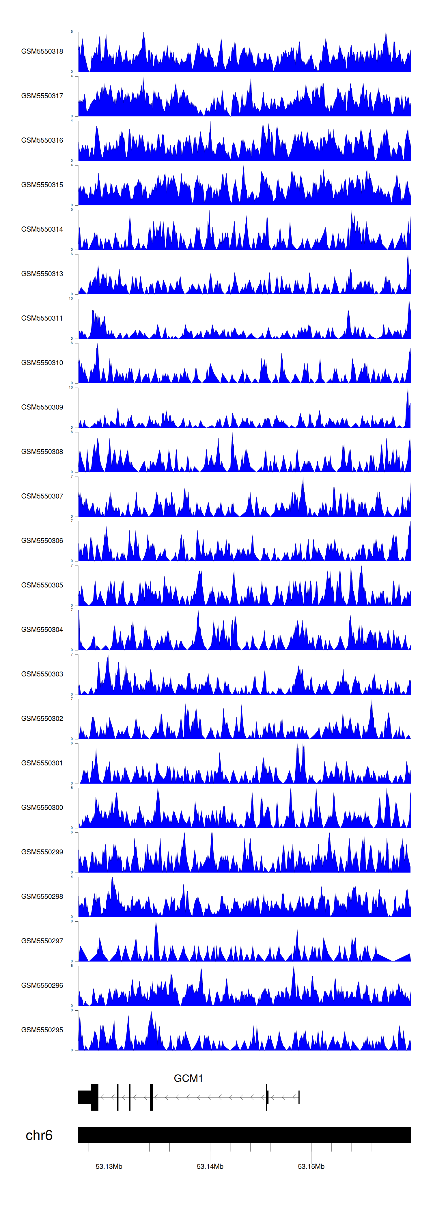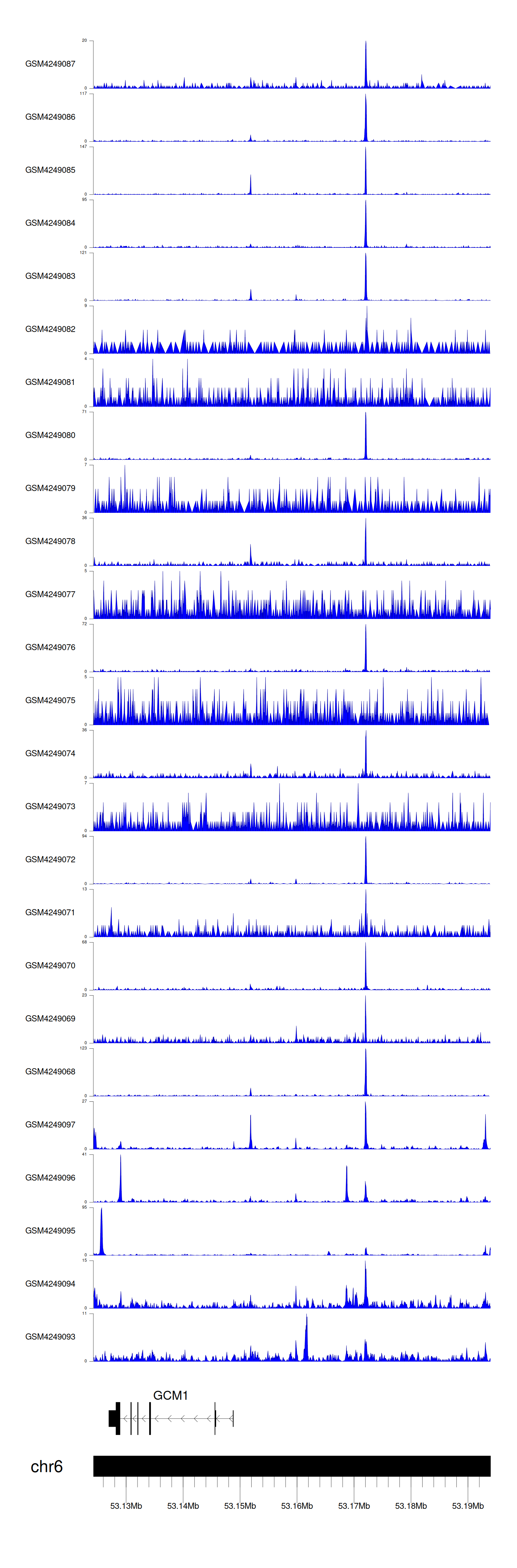 > Dataset: GSE143026 - GCM1 peak across samples