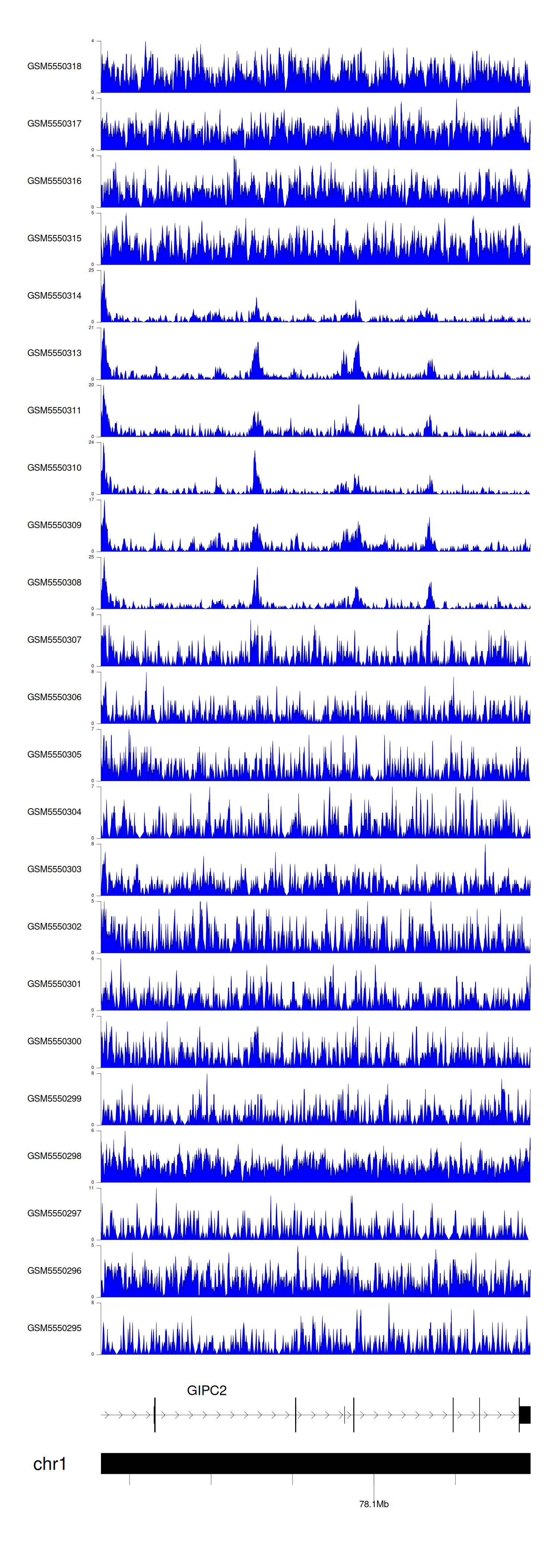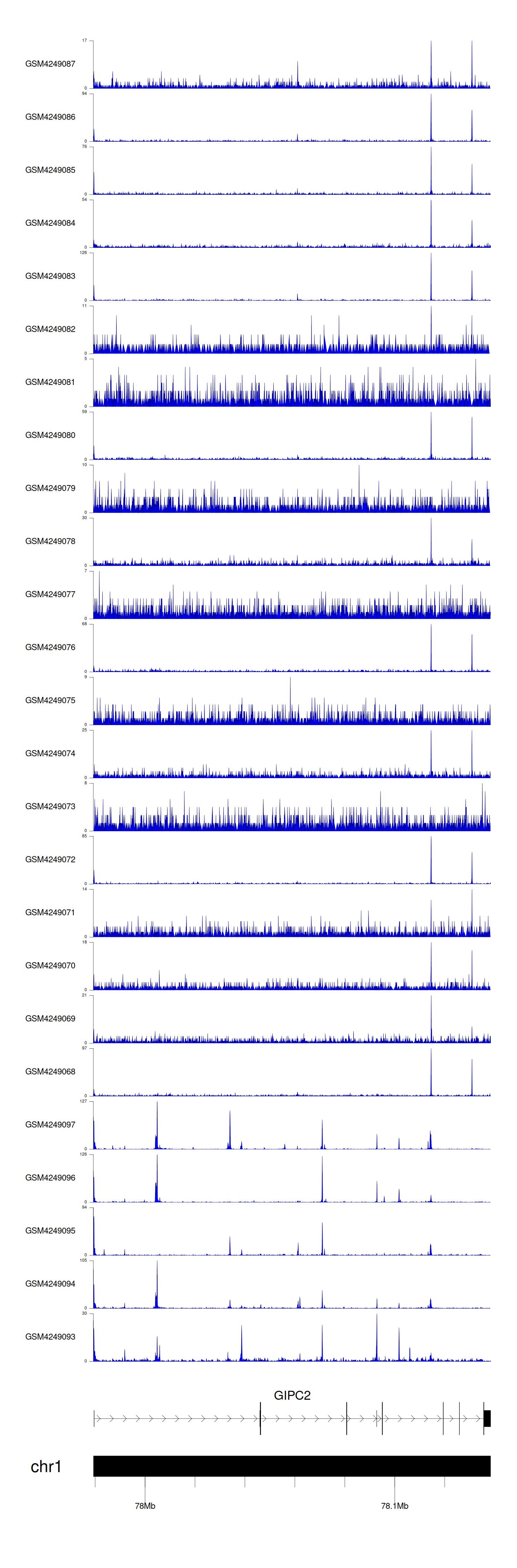 > Dataset: GSE143026 - GIPC2 peak across samples
