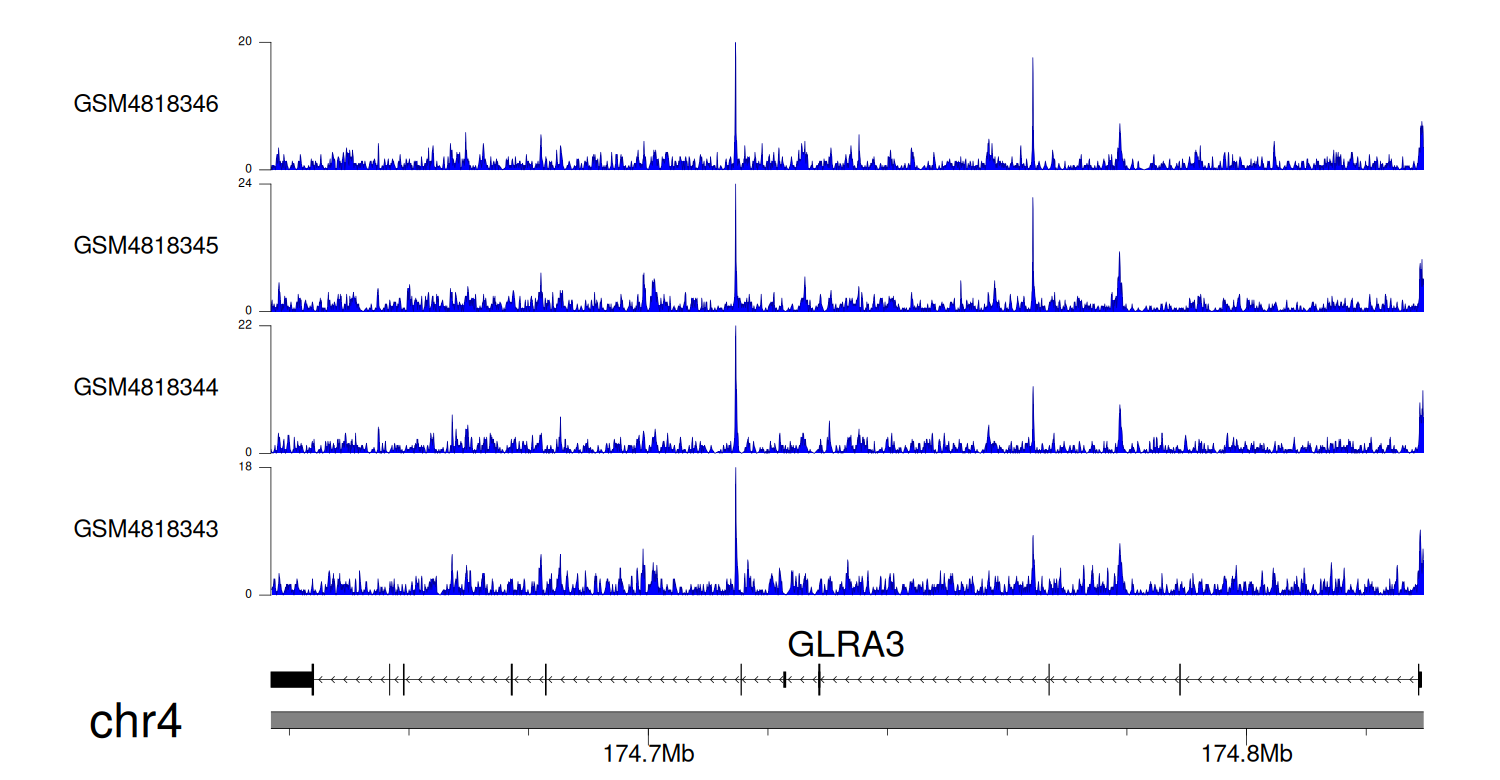> Dataset: GSE131257 - GLRA3 peak across samples