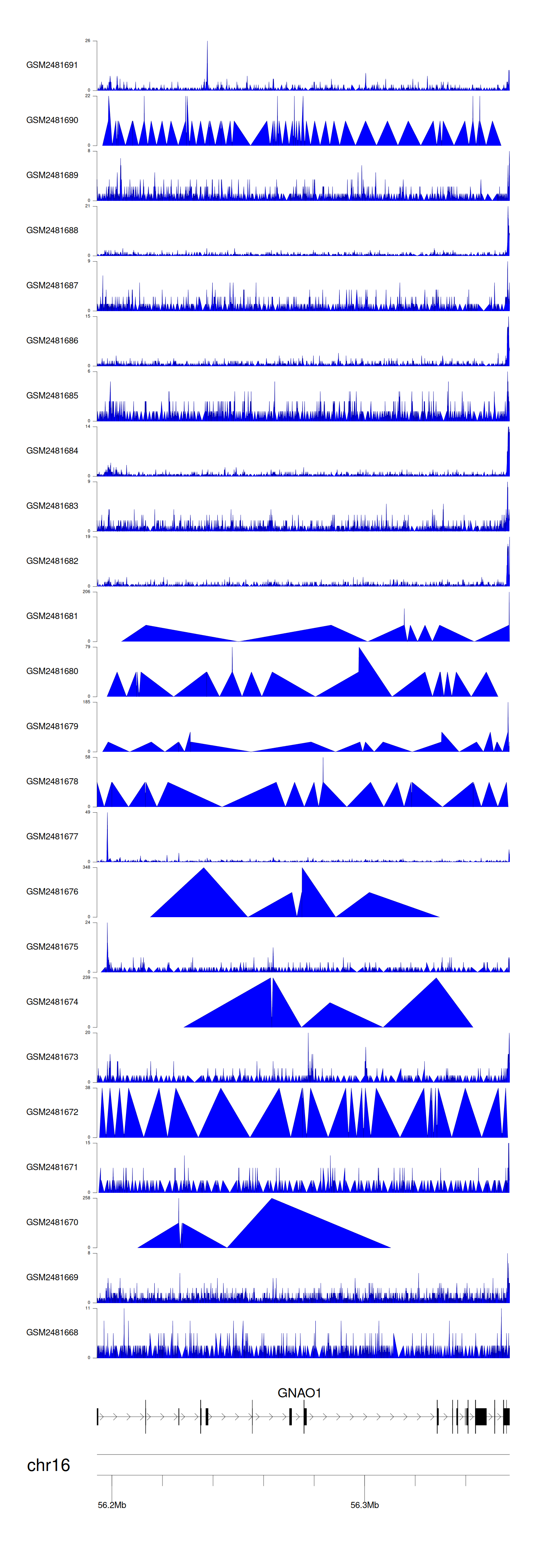 > Dataset: GSE94732 - GNAO1 peak across samples