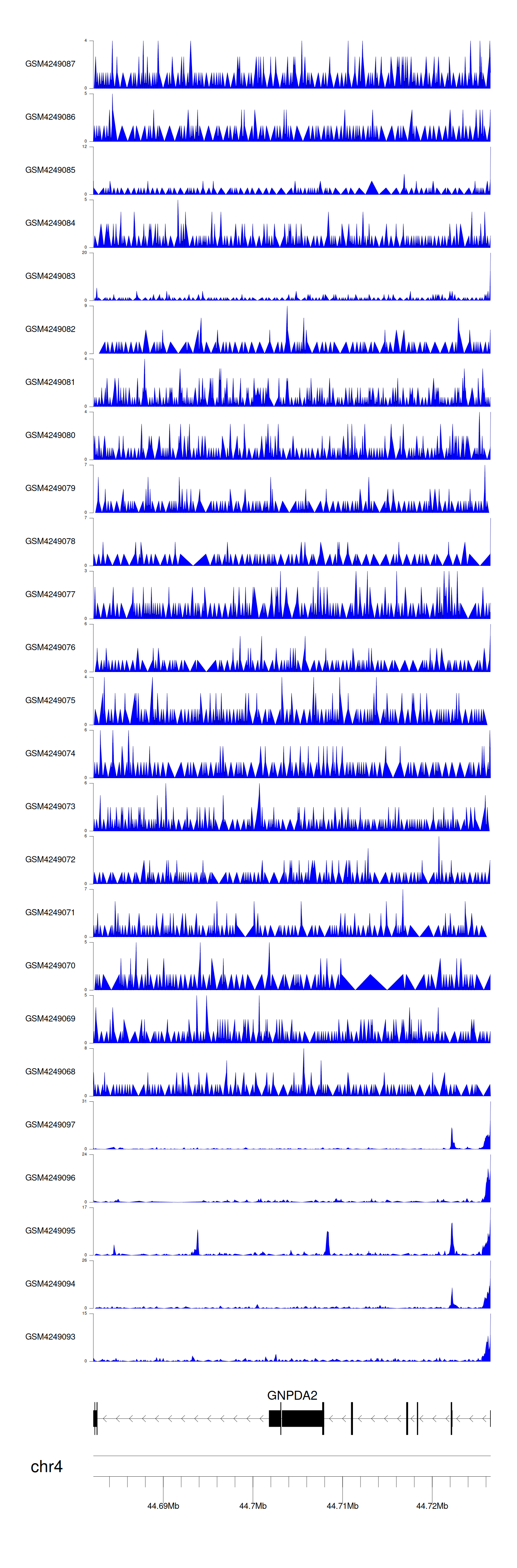 > Dataset: GSE143026 - GNPDA2 peak across samples