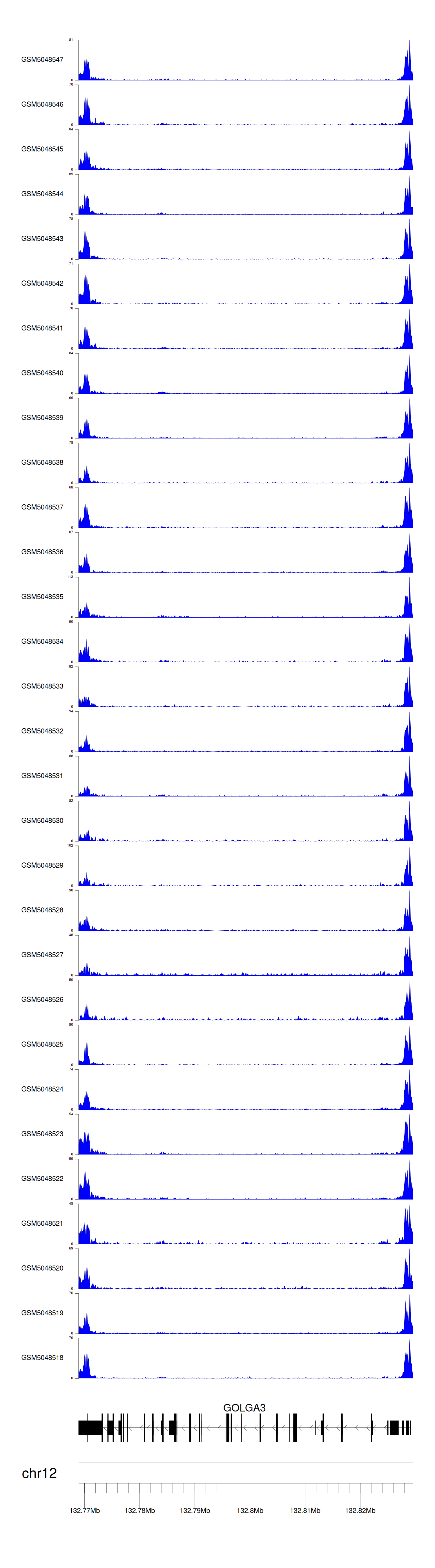 > Dataset: GSE30738 - GOLGA3 peak across samples