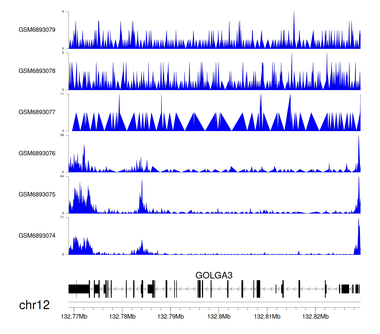 > Dataset: GSE165703 - GOLGA3 peak across samples
