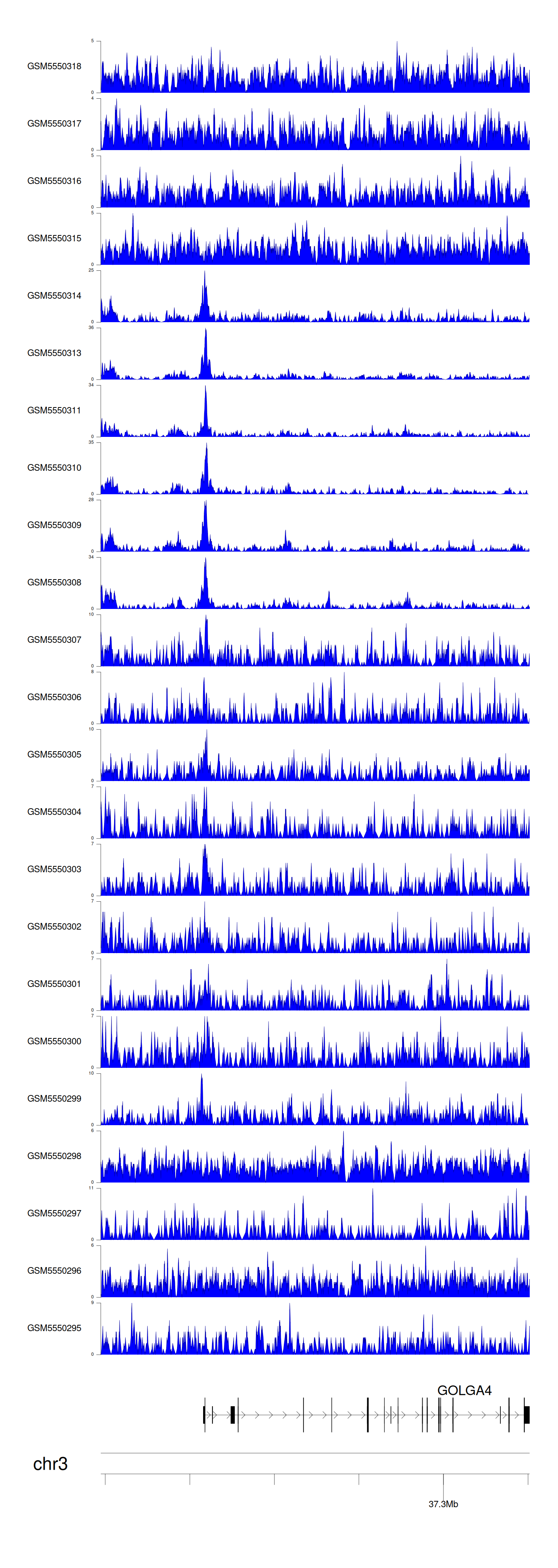 > Dataset: GSE143026 - GOLGA4 peak across samples