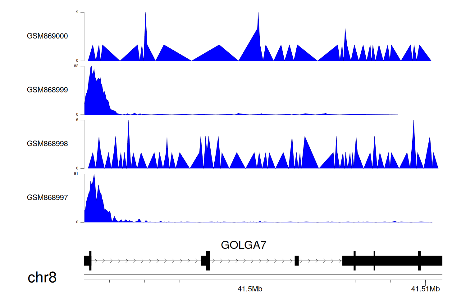 > Dataset: GSE131257 - GOLGA7 peak across samples