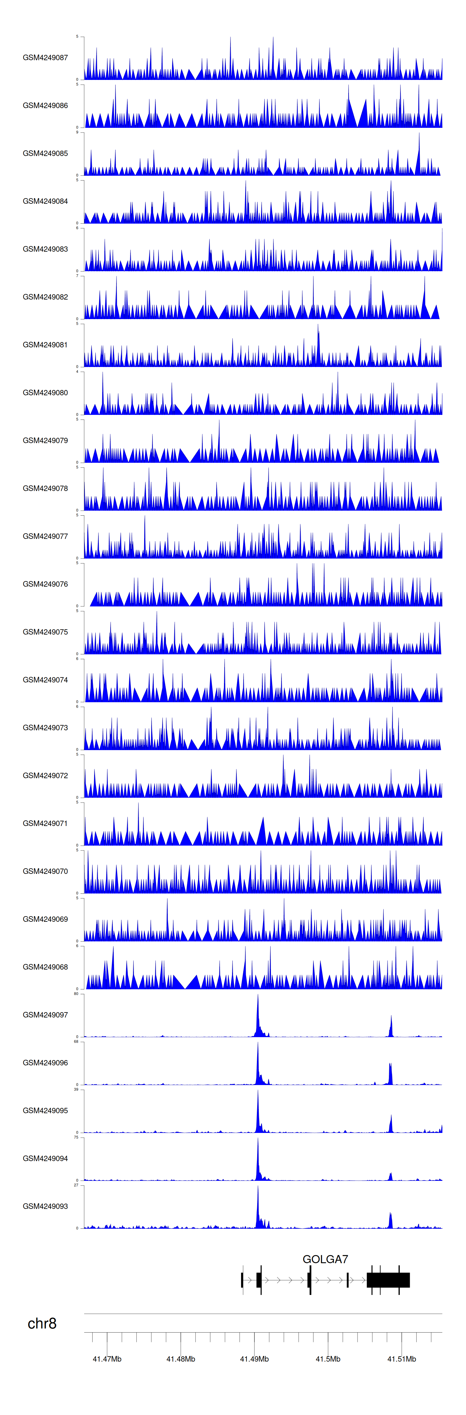 > Dataset: GSE143026 - GOLGA7 peak across samples