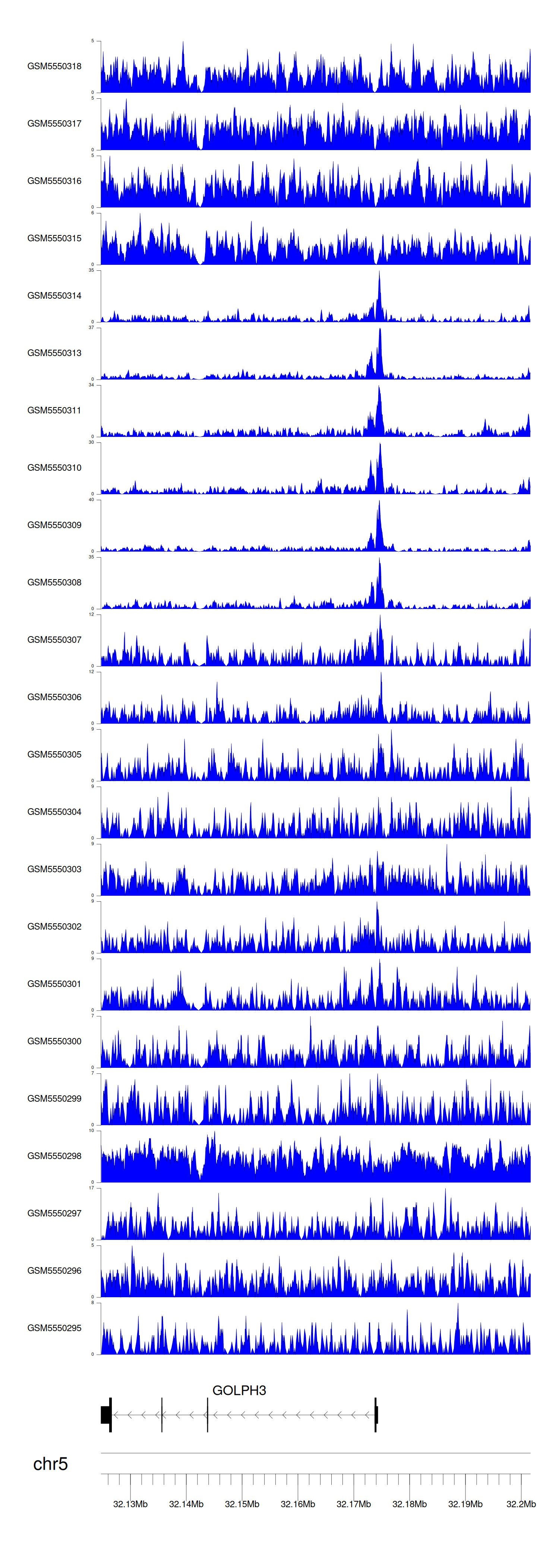 > Dataset: GSE143026 - GOLPH3 peak across samples