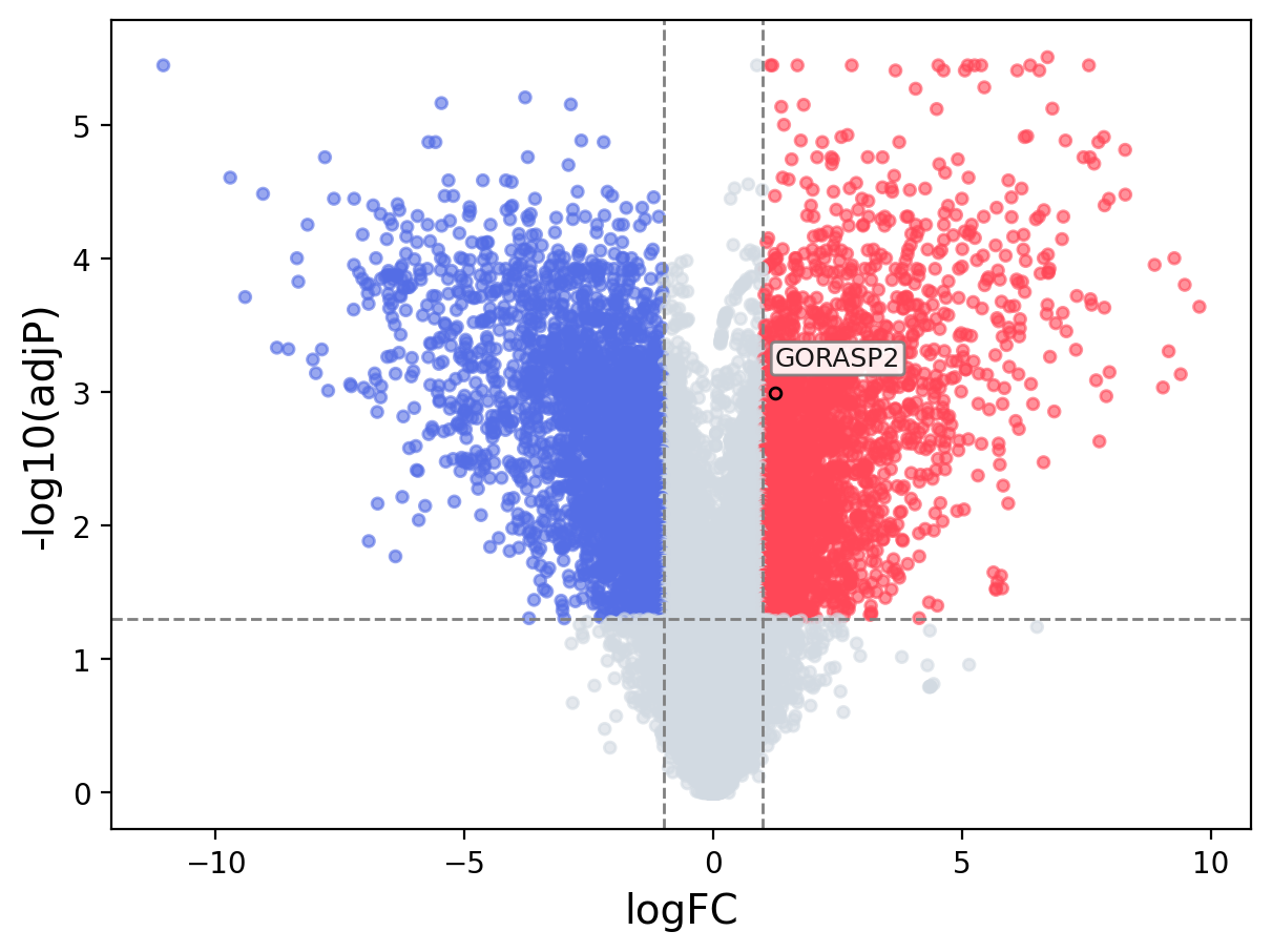 When the query gene is differentially changed in the dataset, a volcano/bar plot will be displayed.