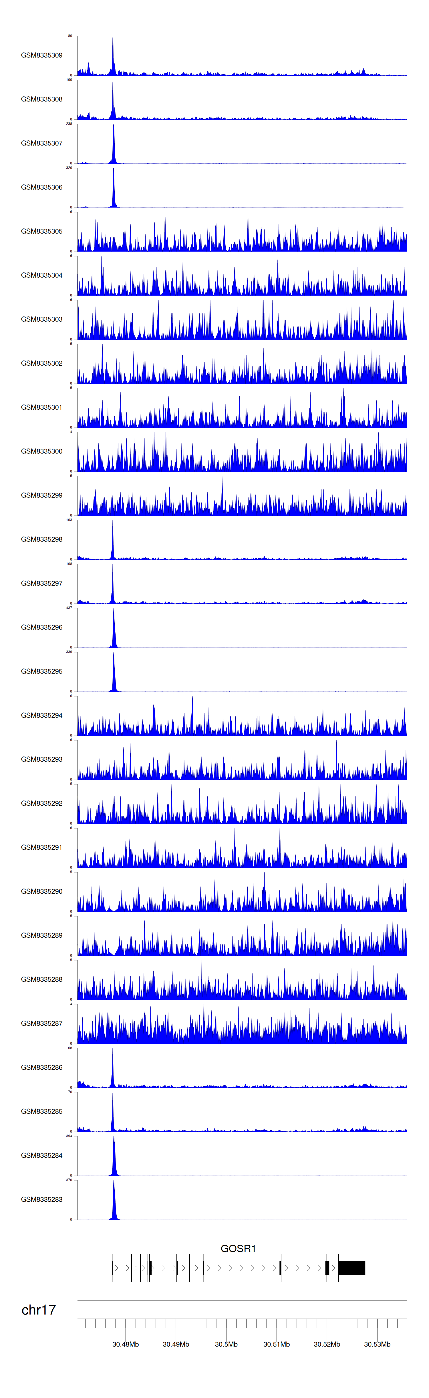 > Dataset: GSE131257 - GOSR1 peak across samples
