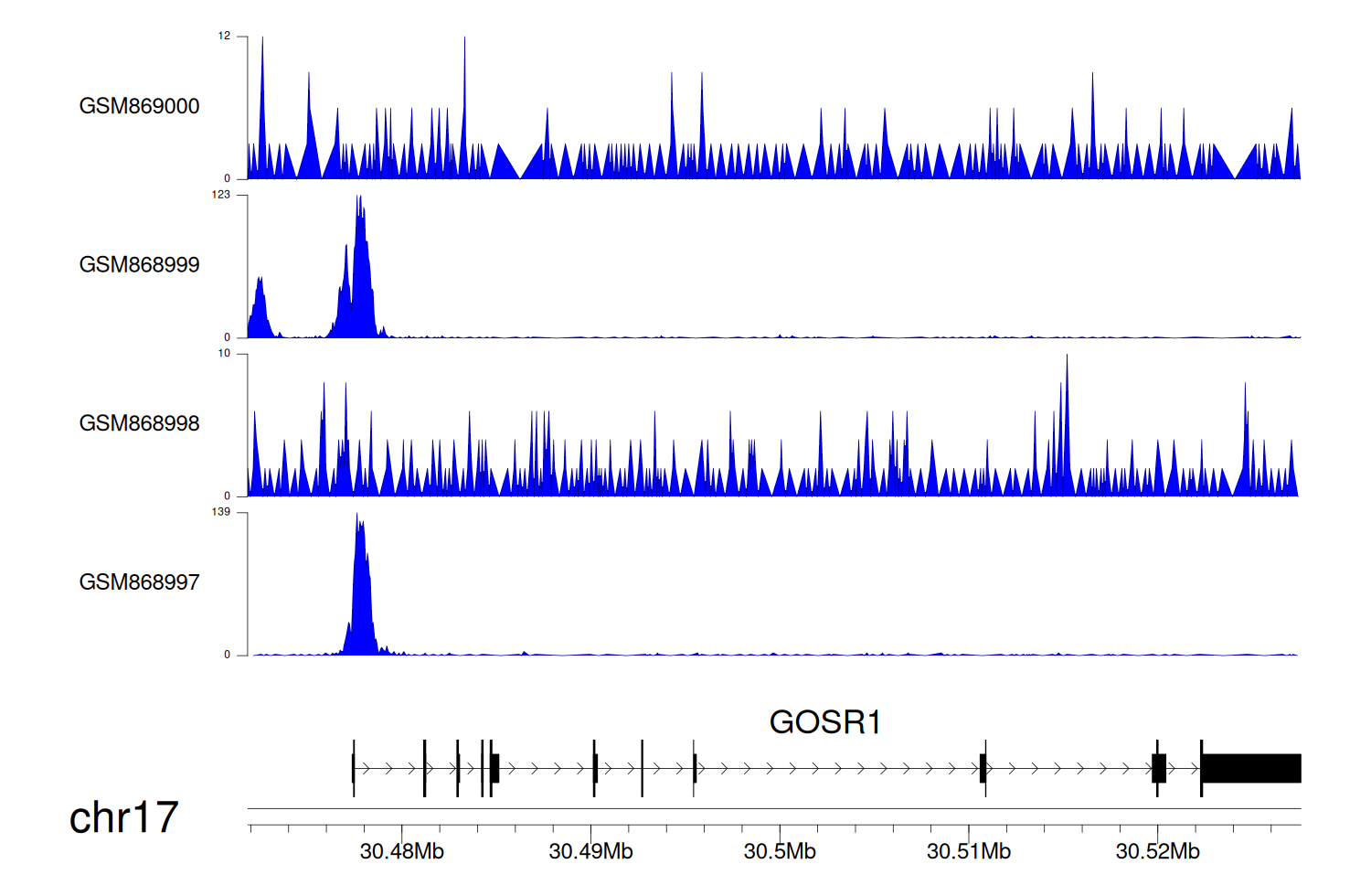 > Dataset: GSE68402 - GOSR1 peak across samples