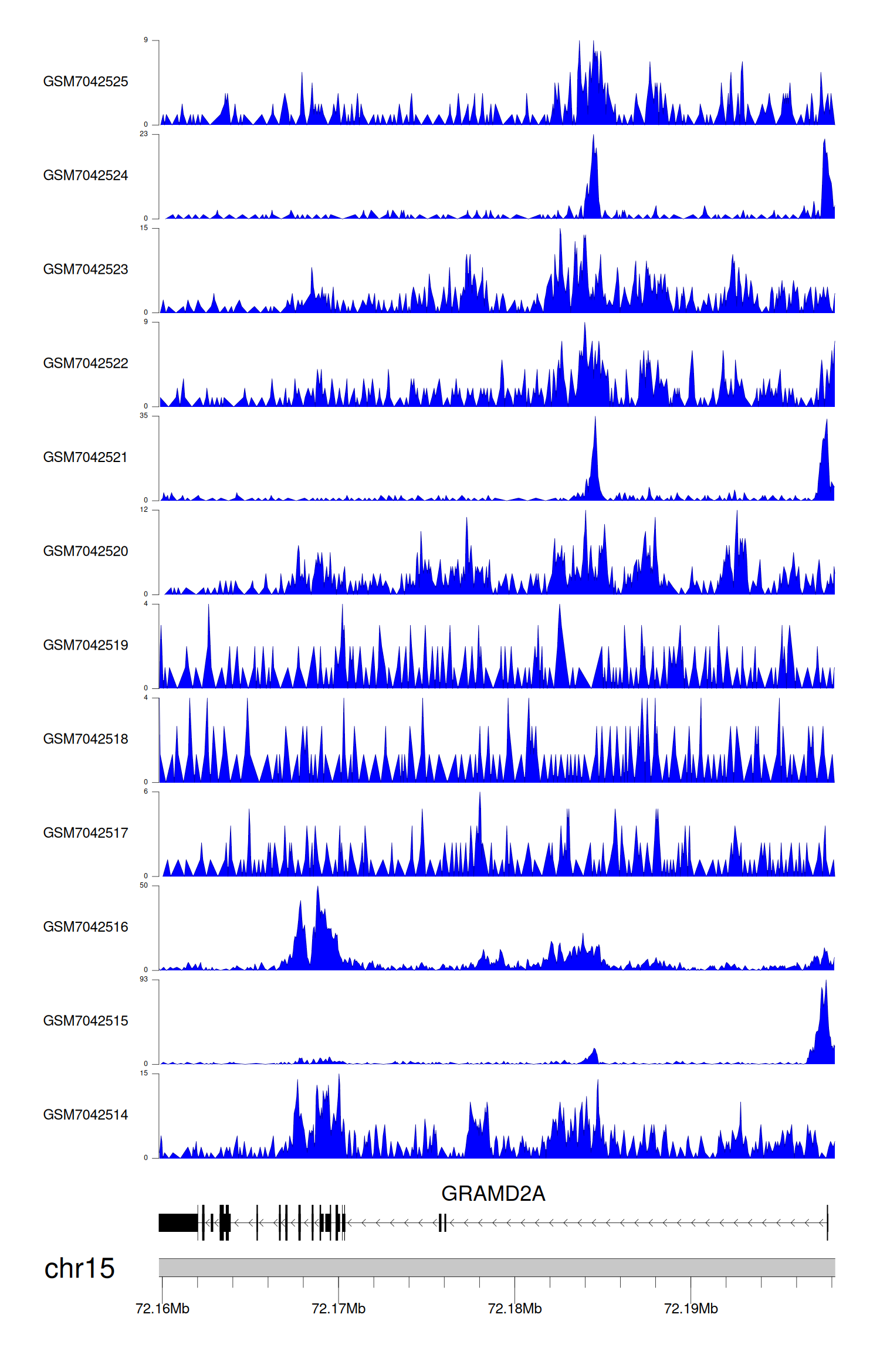 > Dataset: GSE198334 - GRAMD2A peak across samples