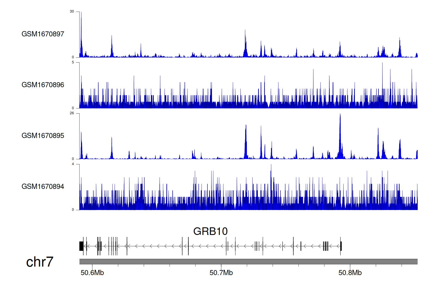 Summary The product of this gene belongs to a small family of adapter proteins that are known to interact with a number of receptor tyrosine kinases and signaling molecules. This gene encodes a growth factor receptor-binding protein that interacts with insulin receptors and insulin-like growth-factor receptors. Overexpression of some isoforms of the encoded protein inhibits tyrosine kinase activity and results in growth suppression. This gene is imprinted in a highly isoform- and tissue-specific manner, with expression observed from the paternal allele in the brain, and from the maternal allele in the placental trophoblasts. Alternatively spliced transcript variants encoding different isoforms have been identified. [provided by RefSeq, Oct 2010]