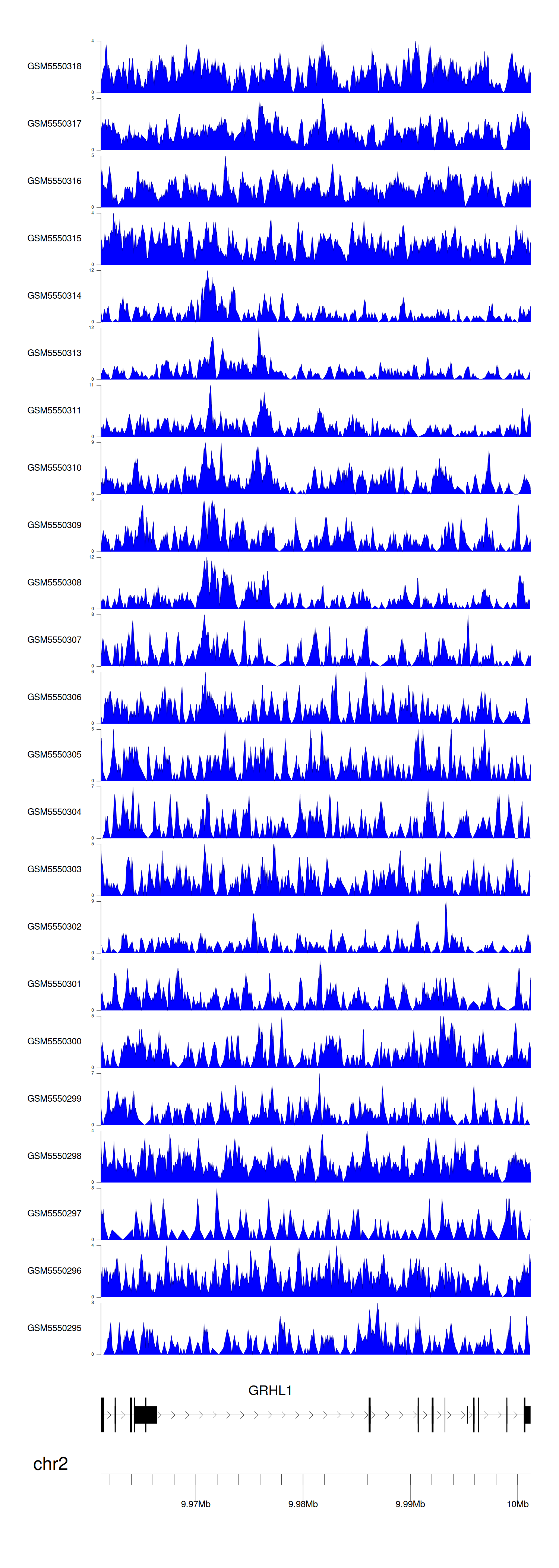 > Dataset: GSE143026 - GRHL1 peak across samples
