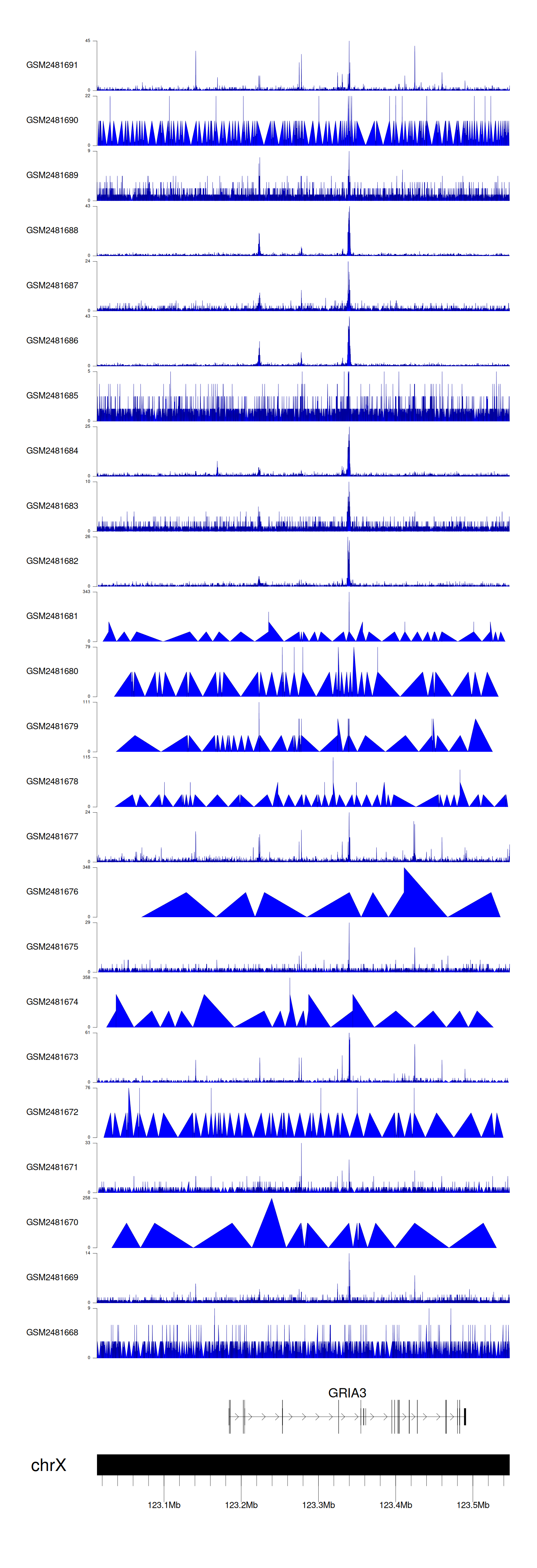 > Dataset: GSE94732 - GRIA3 peak across samples