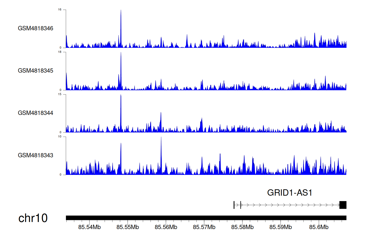 > Dataset: GSE131257 - GRID1-AS1 peak across samples