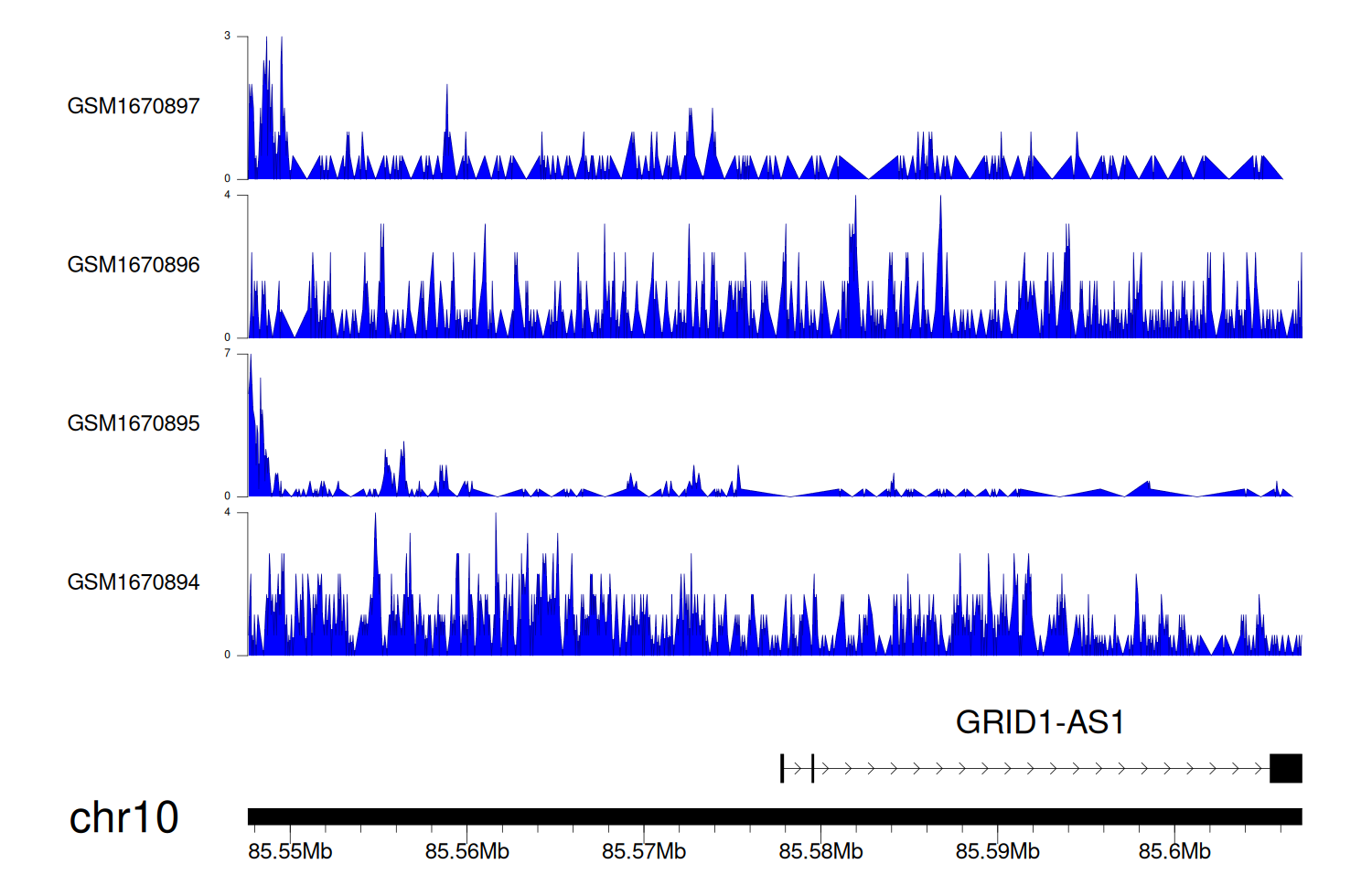 > Dataset: GSE68402 - GRID1-AS1 peak across samples