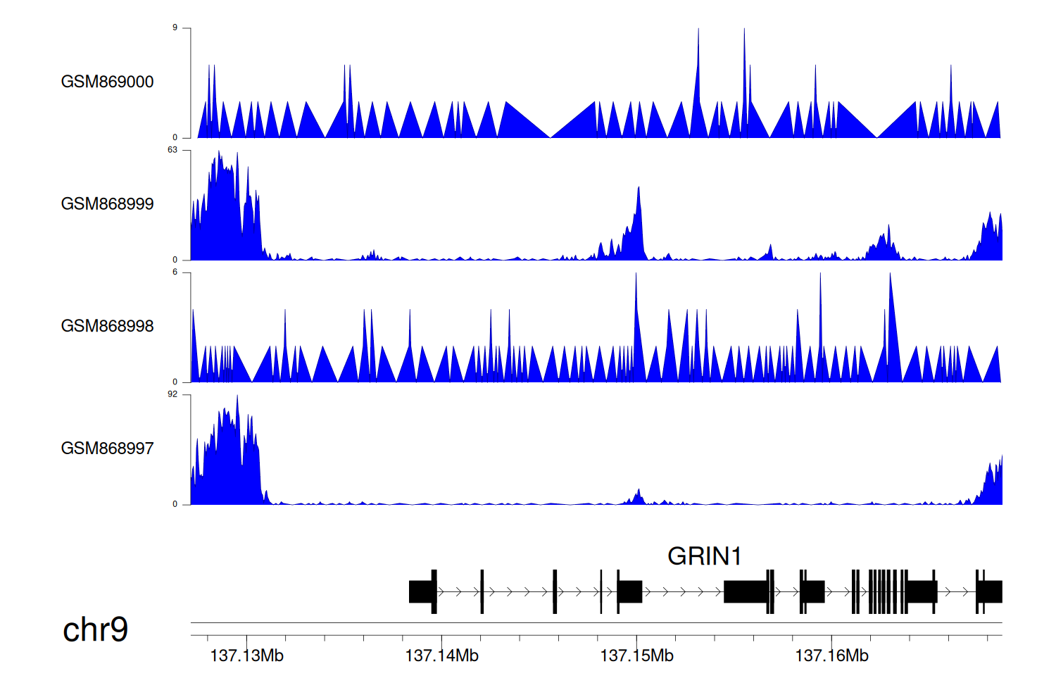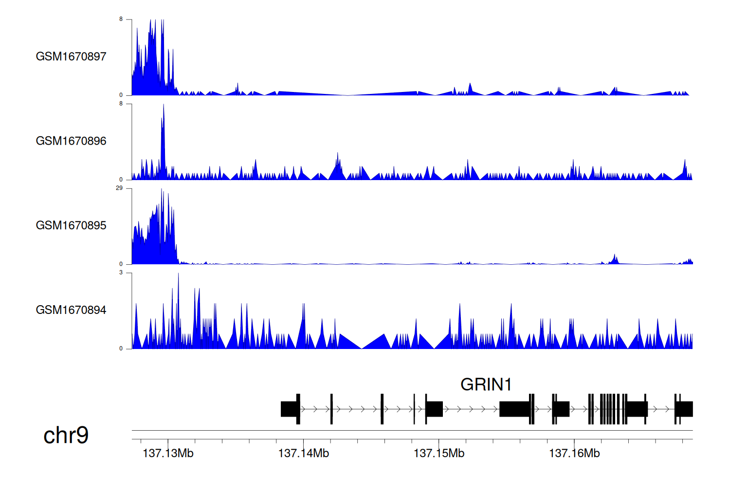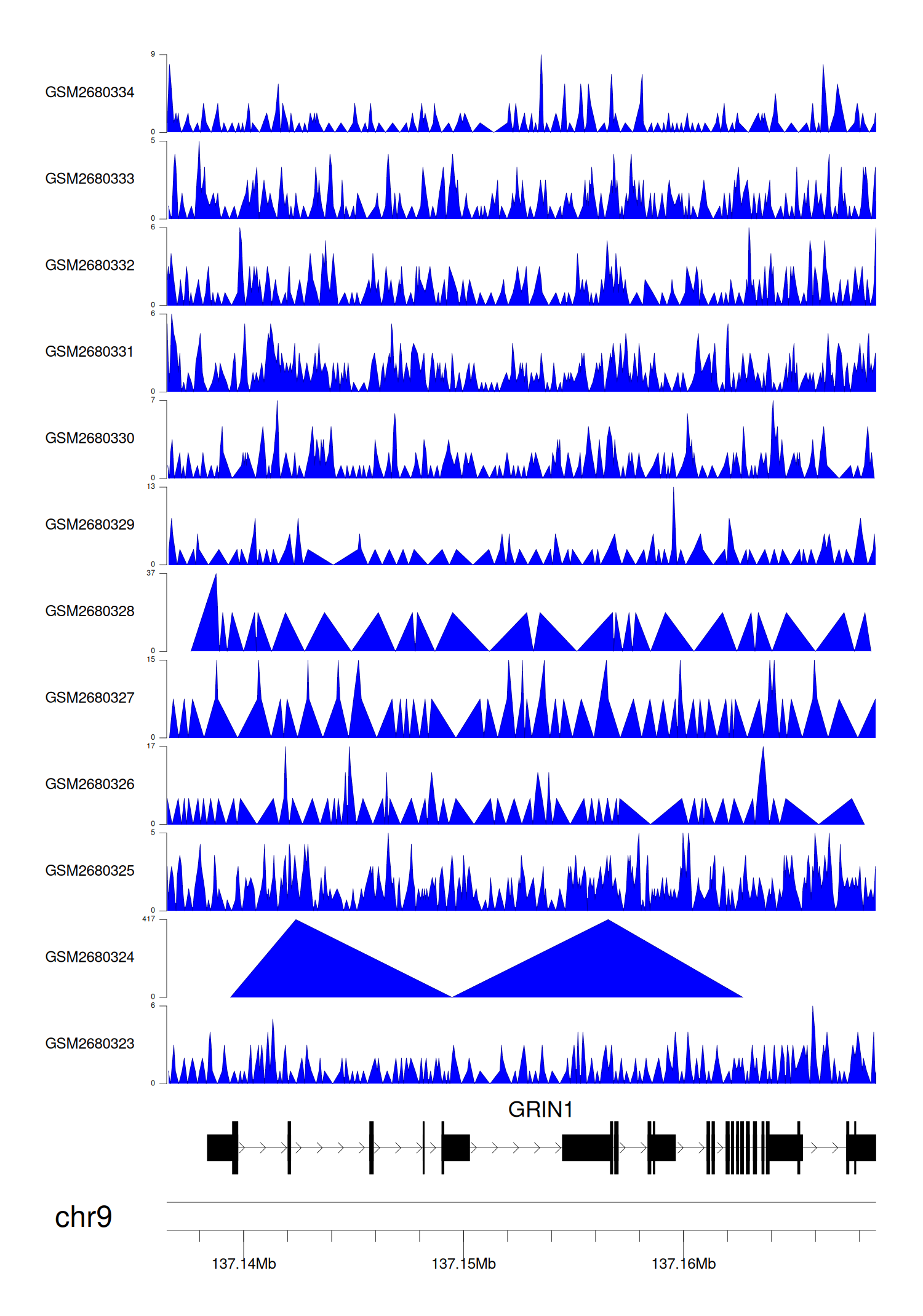 > Dataset: GSE68402 - GRIN1 peak across samples