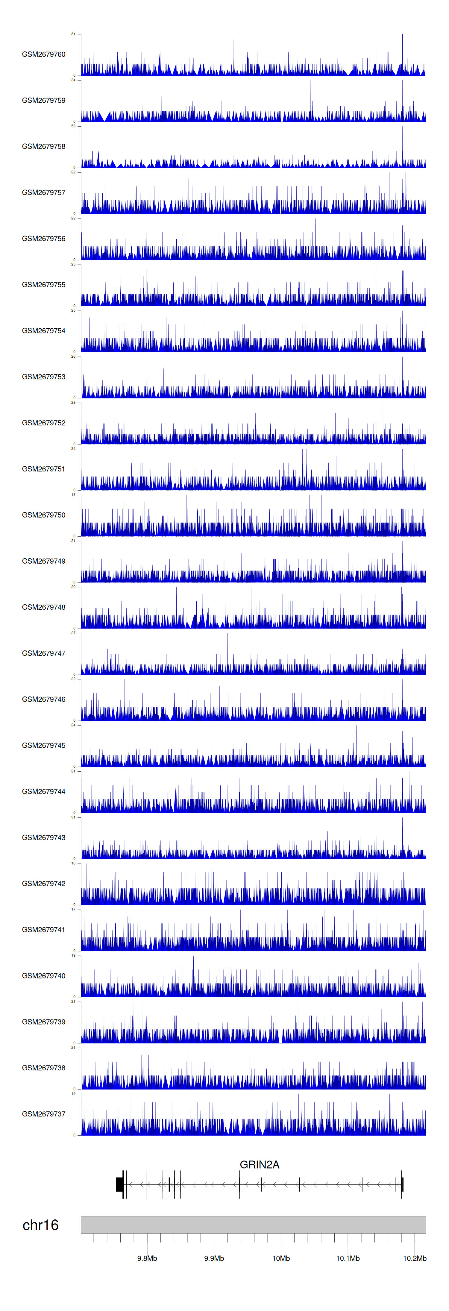 > Dataset: GSE100376 - GRIN2A peak across samples