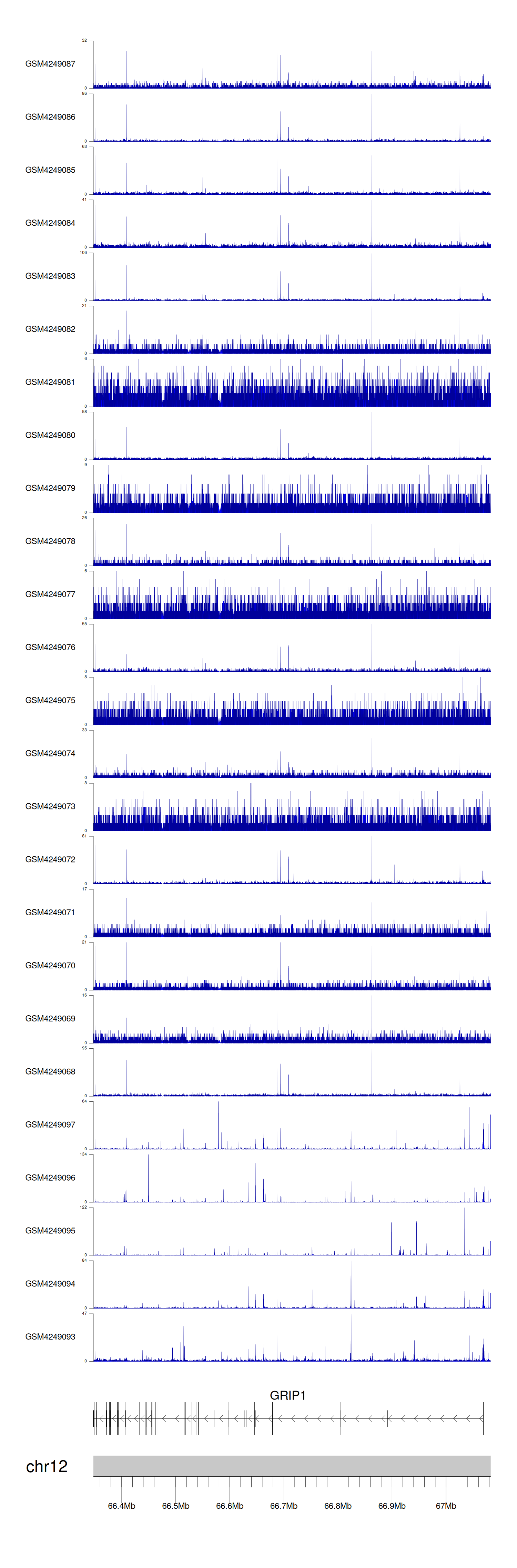 > Dataset: GSE143026 - GRIP1 peak across samples