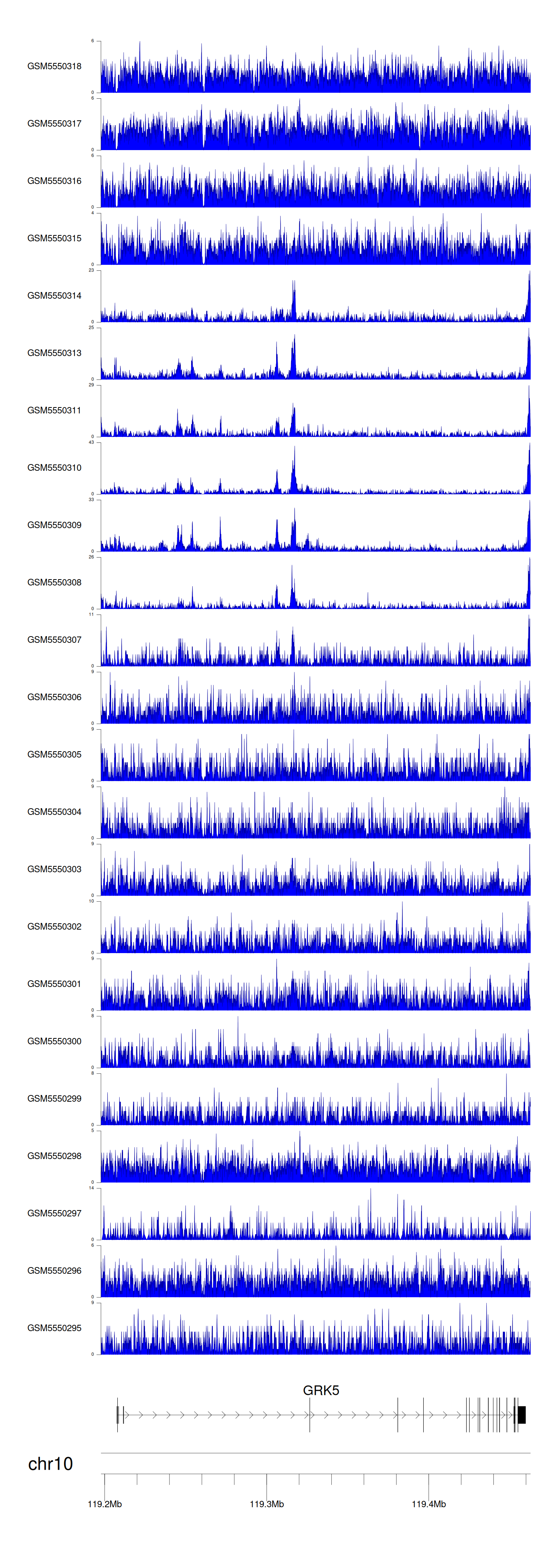 > Dataset: GSE143026 - GRK5 peak across samples