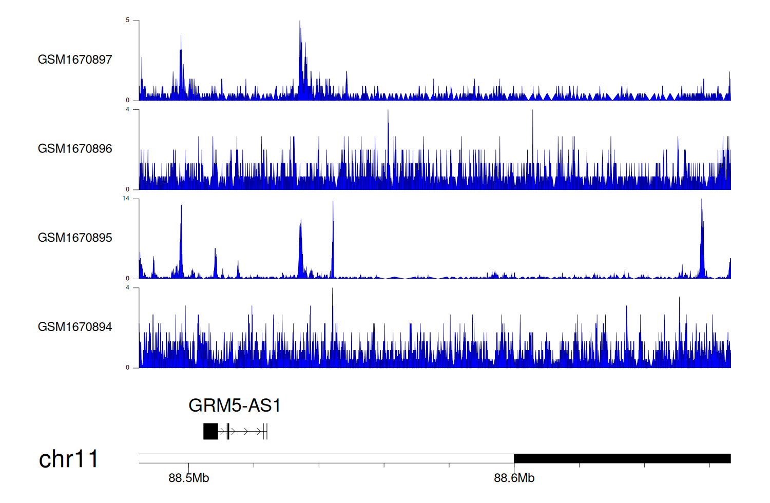 > Dataset: GSE68402 - GRM5-AS1 peak across samples
