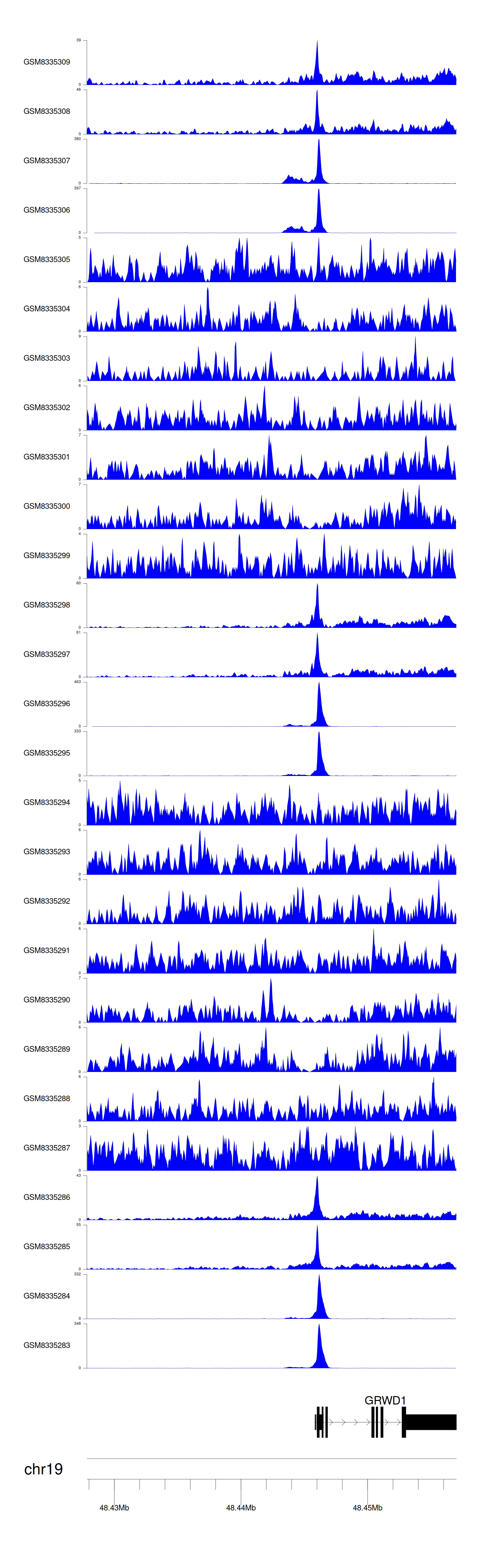 > Dataset: GSE131257 - GRWD1 peak across samples
