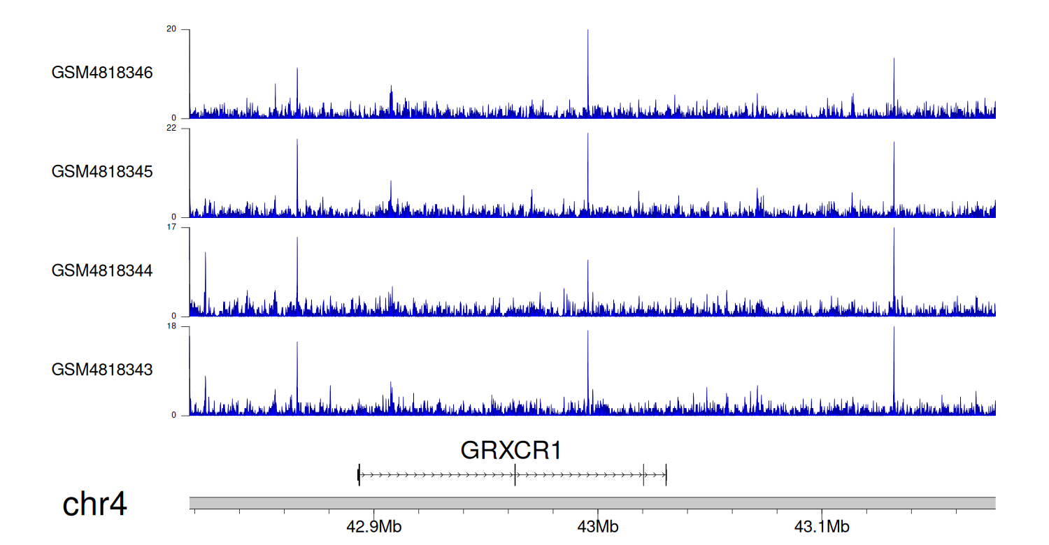 > Dataset: GSE100400 - GRXCR1 peak across samples