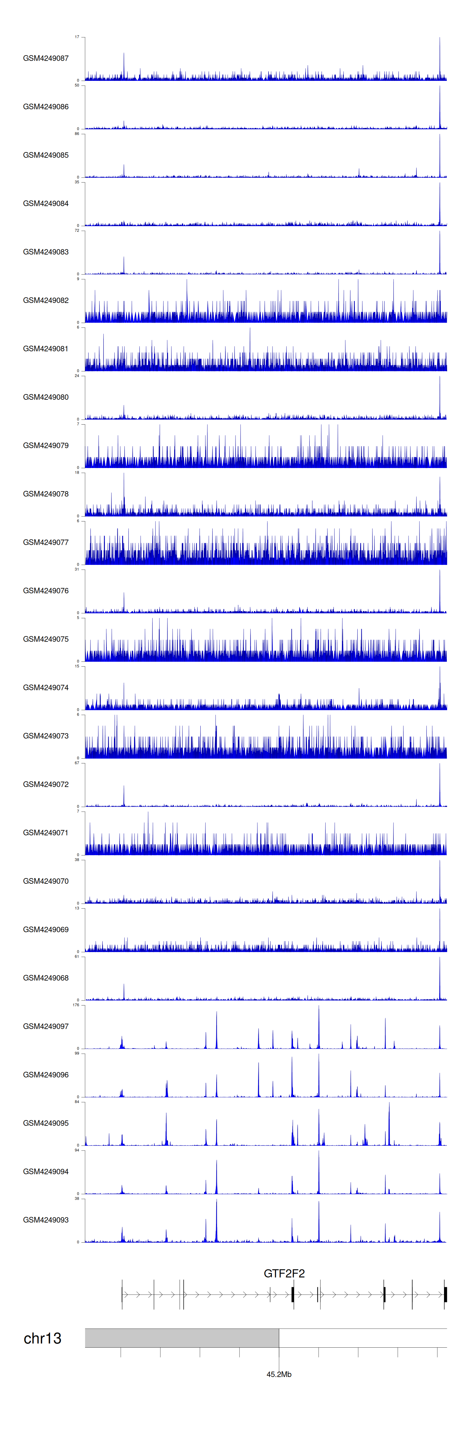 > Dataset: GSE143026 - GTF2F2 peak across samples