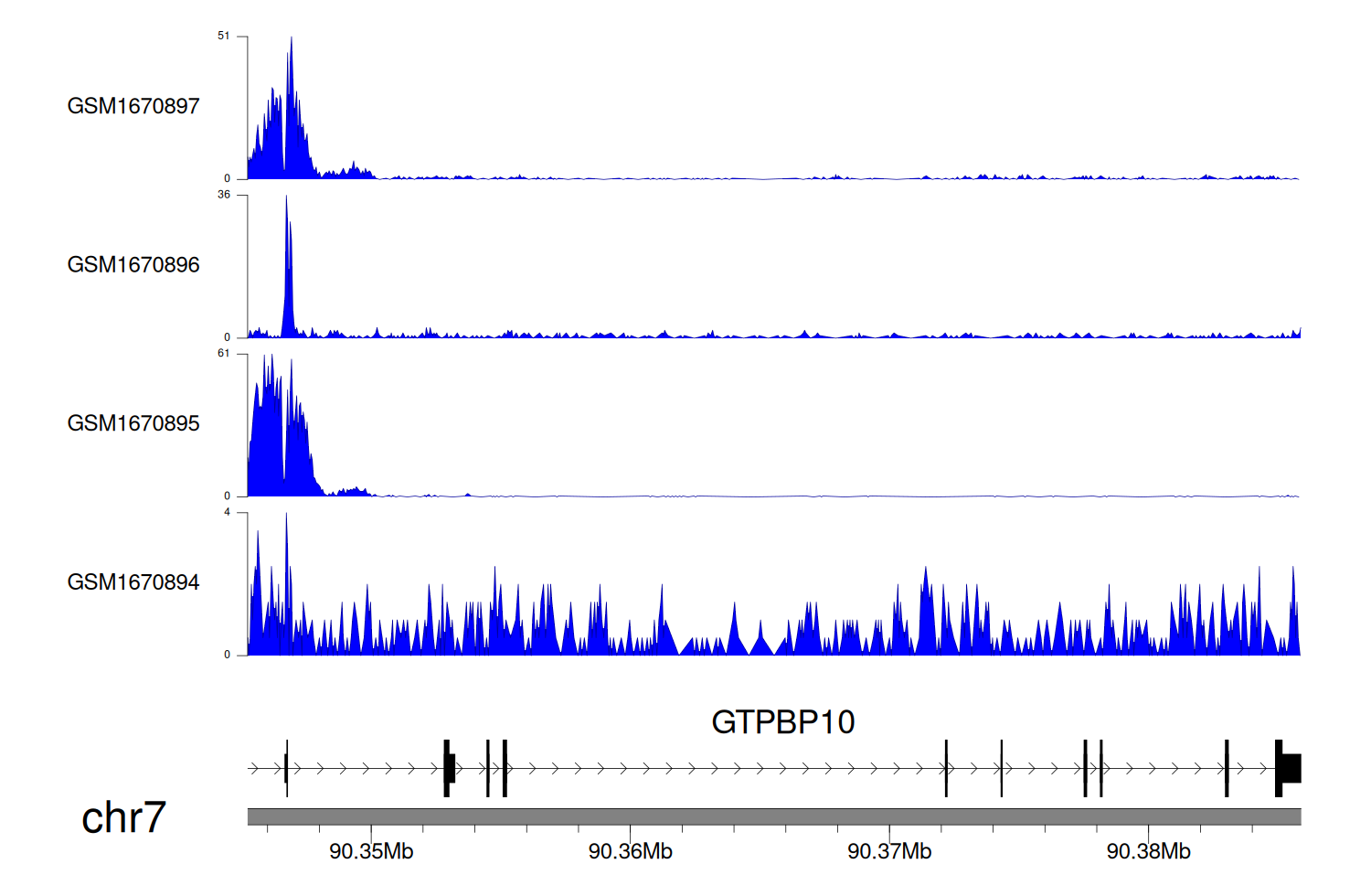 > Dataset: GSE68402 - GTPBP10 peak across samples