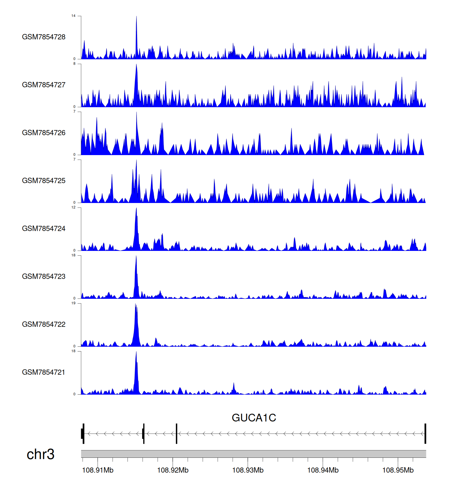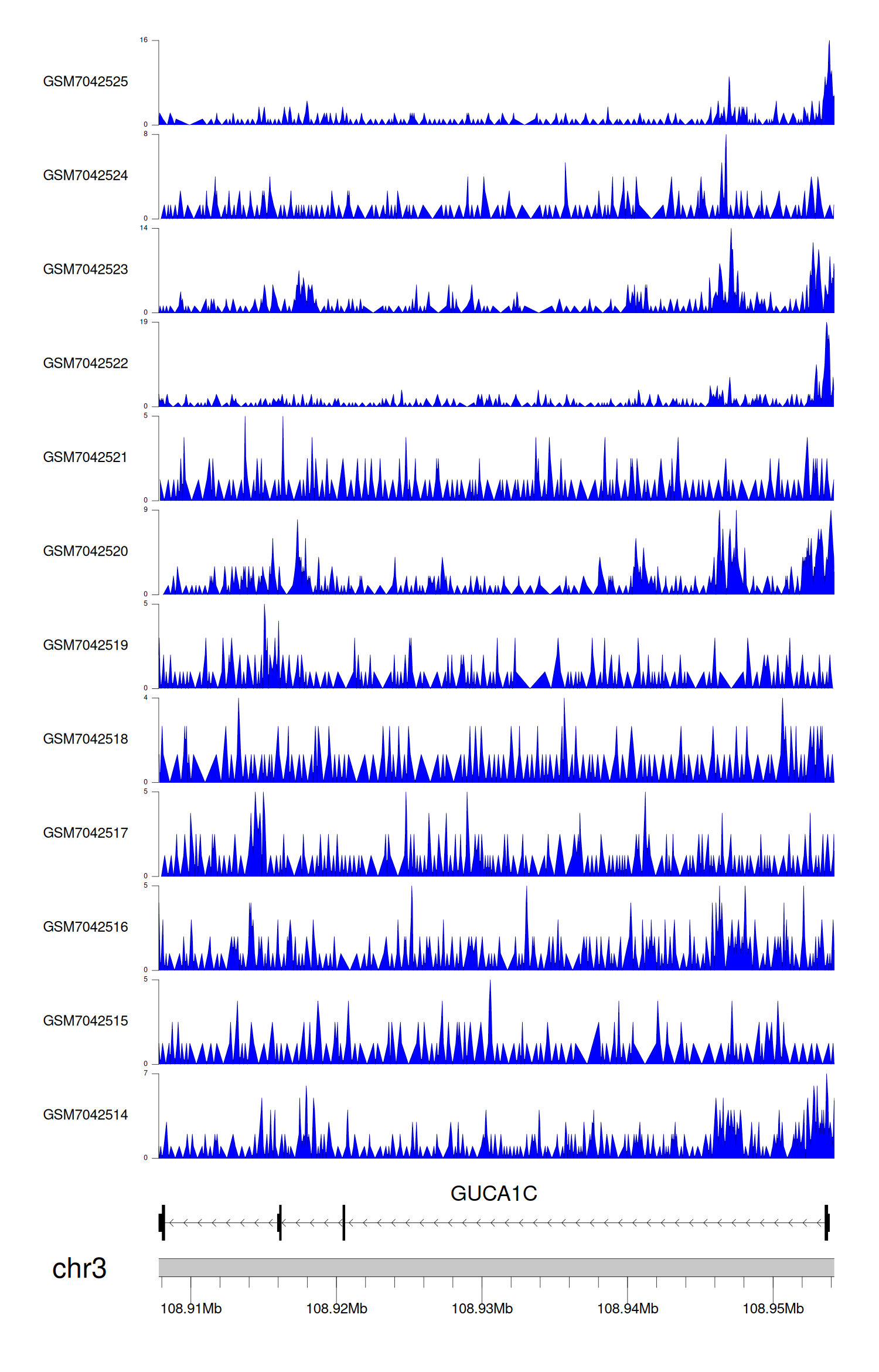 > Dataset: GSE246060 - GUCA1C peak across samples