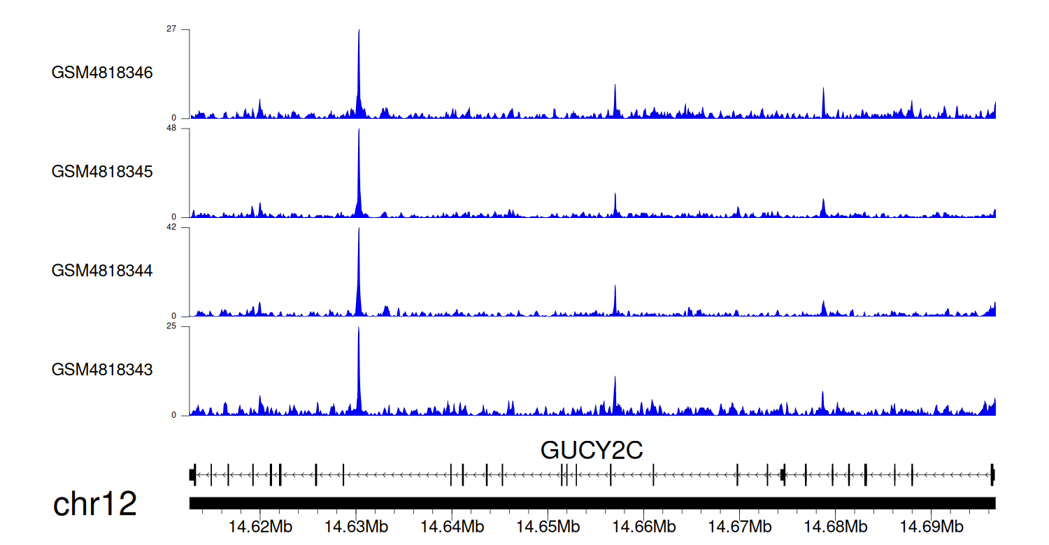 > Dataset: GSE131257 - GUCY2C peak across samples
