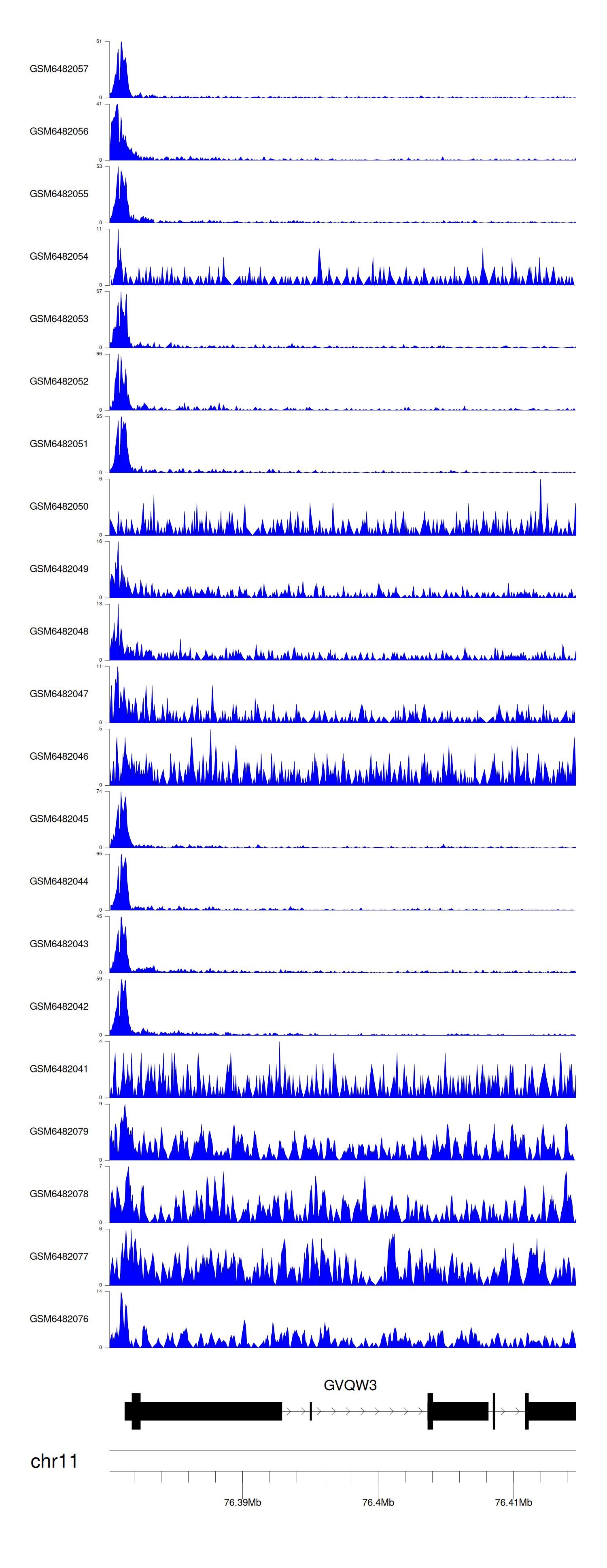 > Dataset: GSE165705 - GVQW3 peak across samples