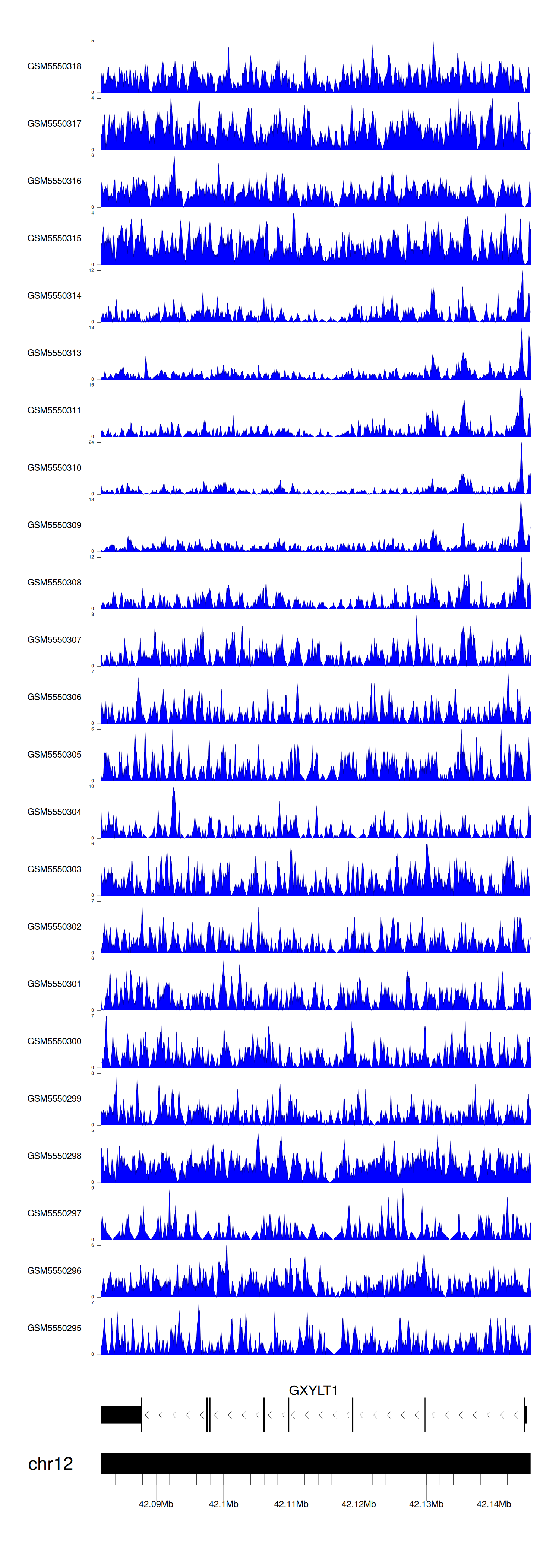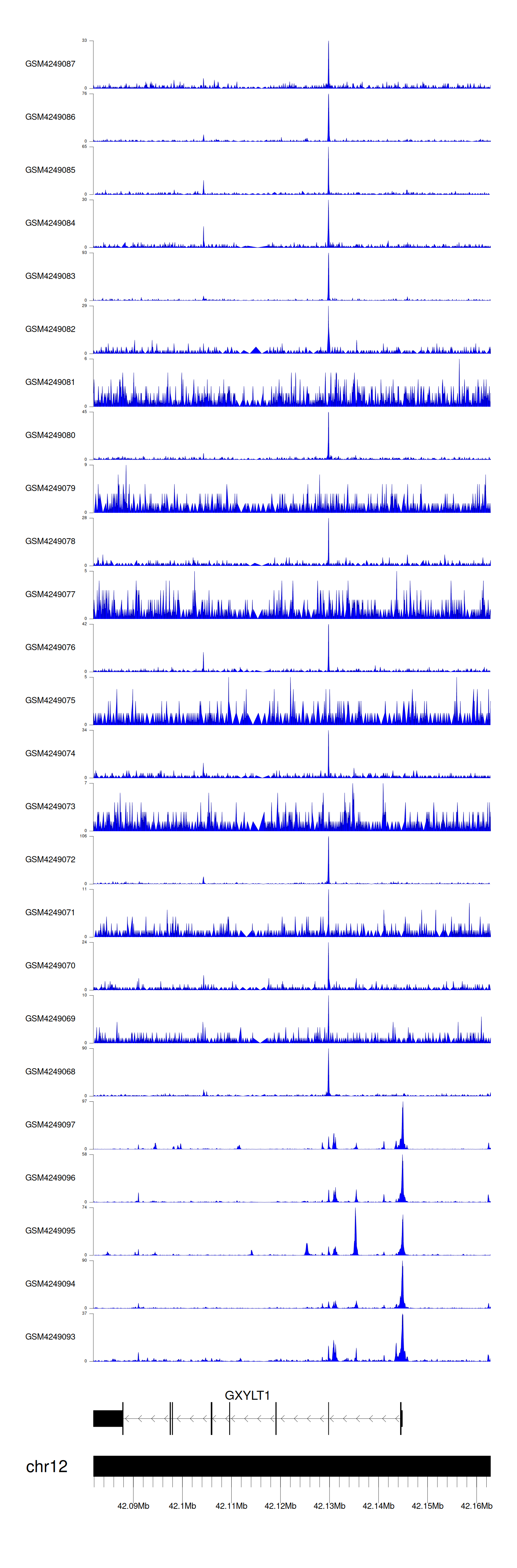 > Dataset: GSE143026 - GXYLT1 peak across samples