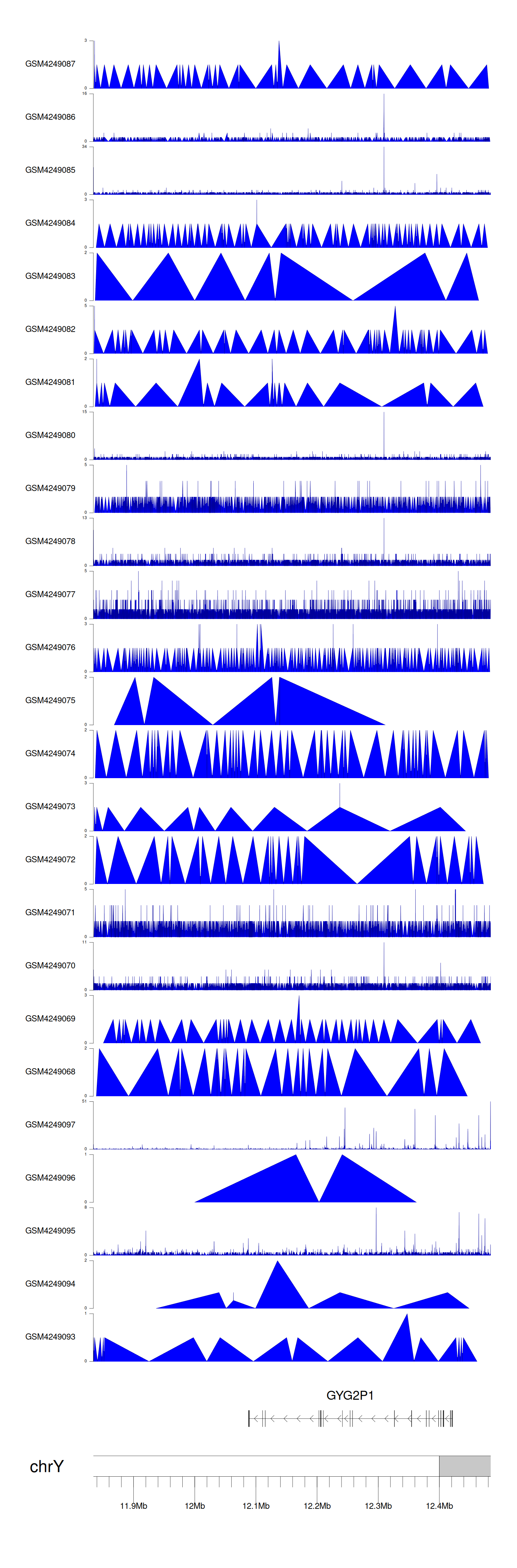 > Dataset: GSE143026 - GYG2P1 peak across samples