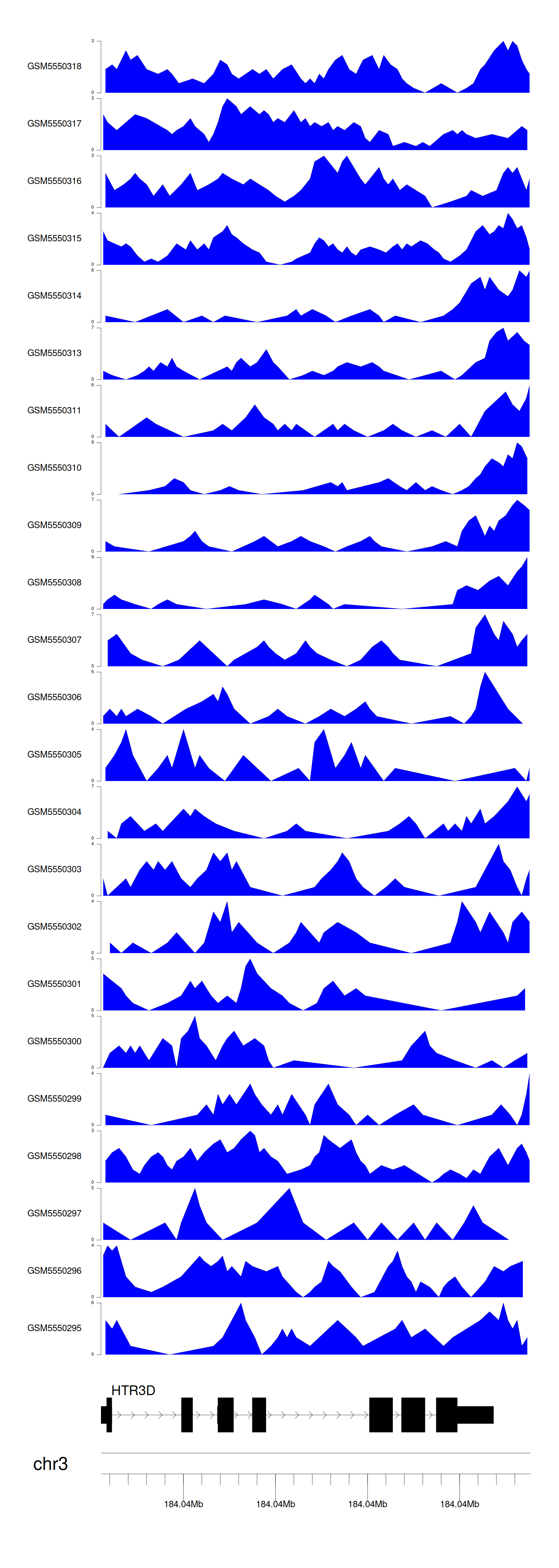 The protein encoded this gene belongs to the ligand-gated ion channel receptor superfamily. This gene encodes subunit D of the type 3 receptor for 5-hydroxytryptamine (serotonin), a biogenic hormone that functions as a neurotransmitter, a mitogen and a hormone. This hormone has been linked to neuropsychiatric disorders, including anxiety, depression, and migraine. Serotonin receptors causes fast and depolarizing responses in neurons following activation. The genes encoding subunits C, D and E of this type 3 receptor form a cluster on chromosome 3. Alternatively spliced transcript variants encoding different isoforms have been found for this gene. [provided by RefSeq, Jul 2009] |