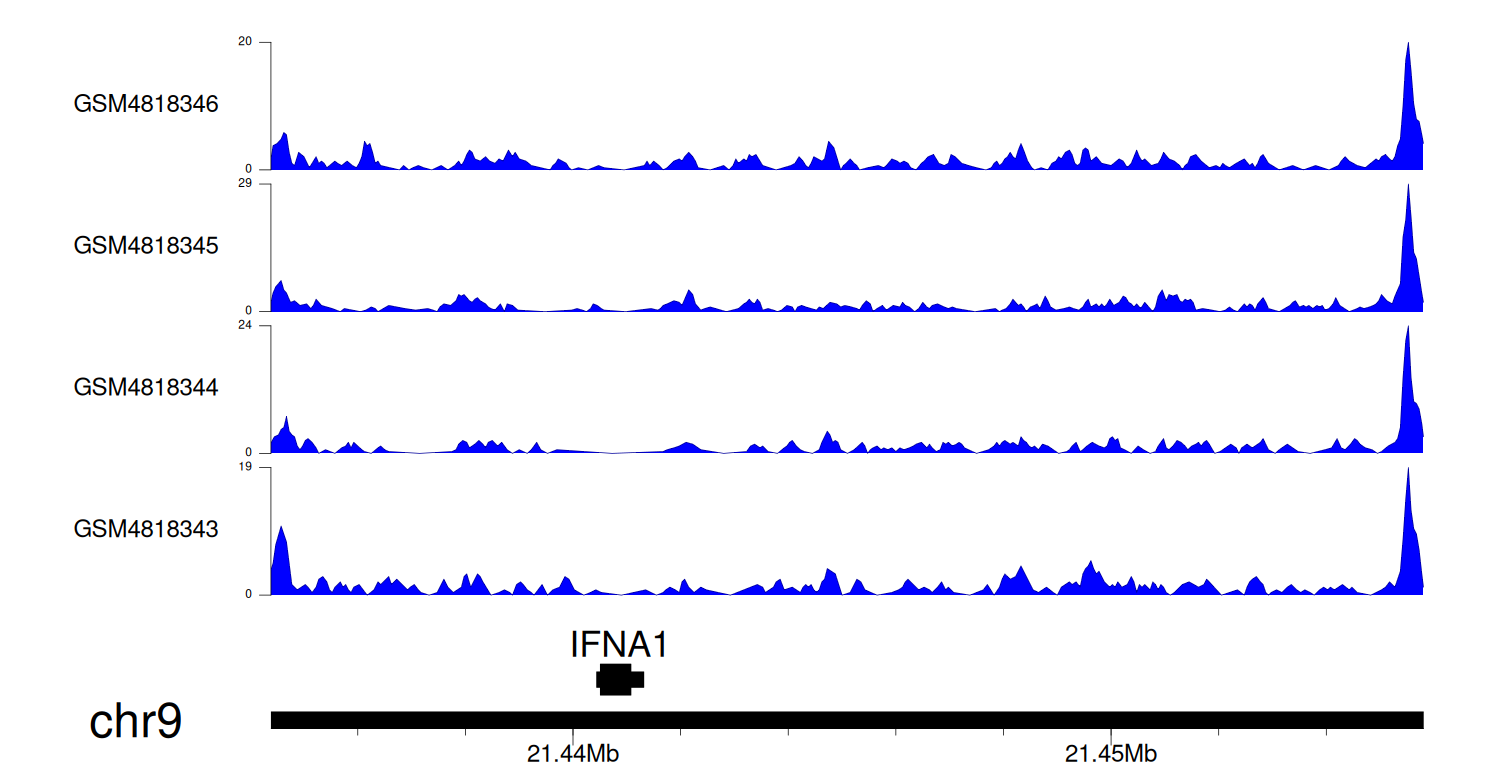 > Dataset: GSE131257 - IFNA1 peak across samples