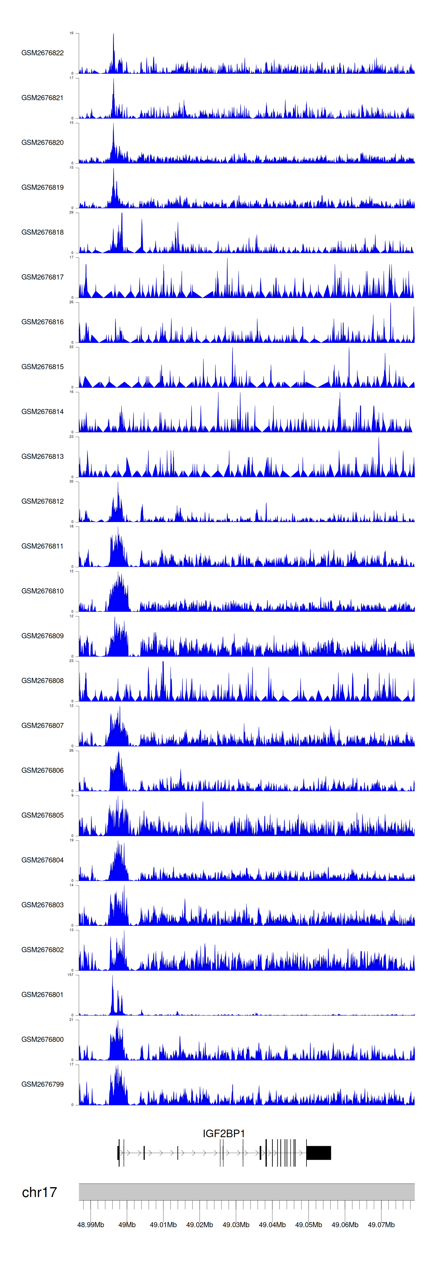 > Dataset: GSE100376 - IGF2BP1 peak across samples
