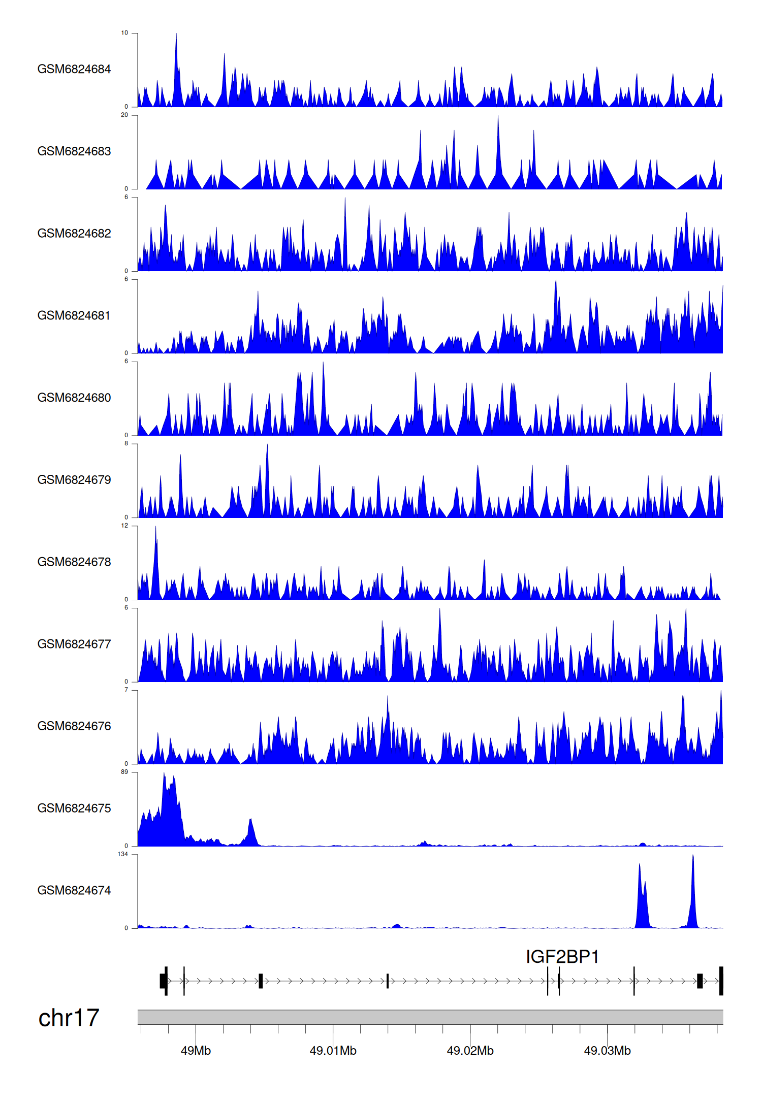 > Dataset: GSE165703 - IGF2BP1 peak across samples