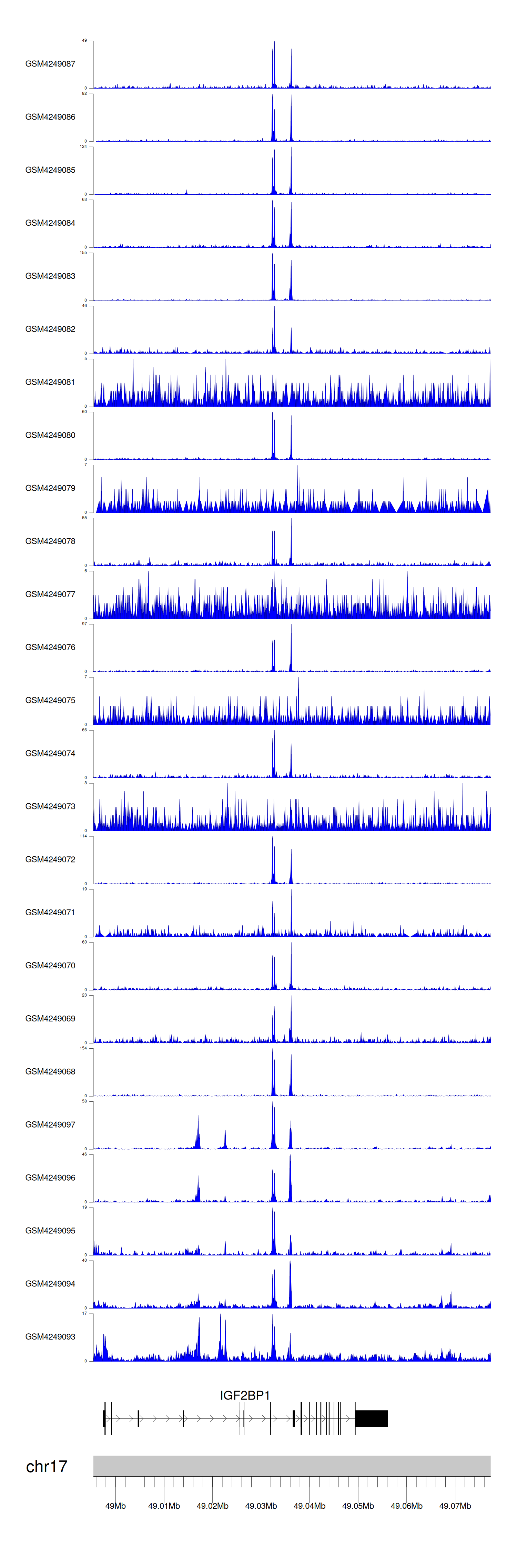 > Dataset: GSE143026 - IGF2BP1 peak across samples