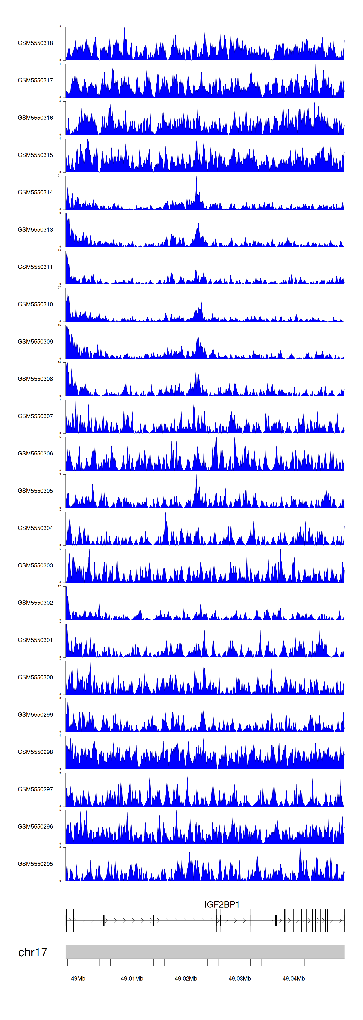 > Dataset: GSE183048 - IGF2BP1 peak across samples