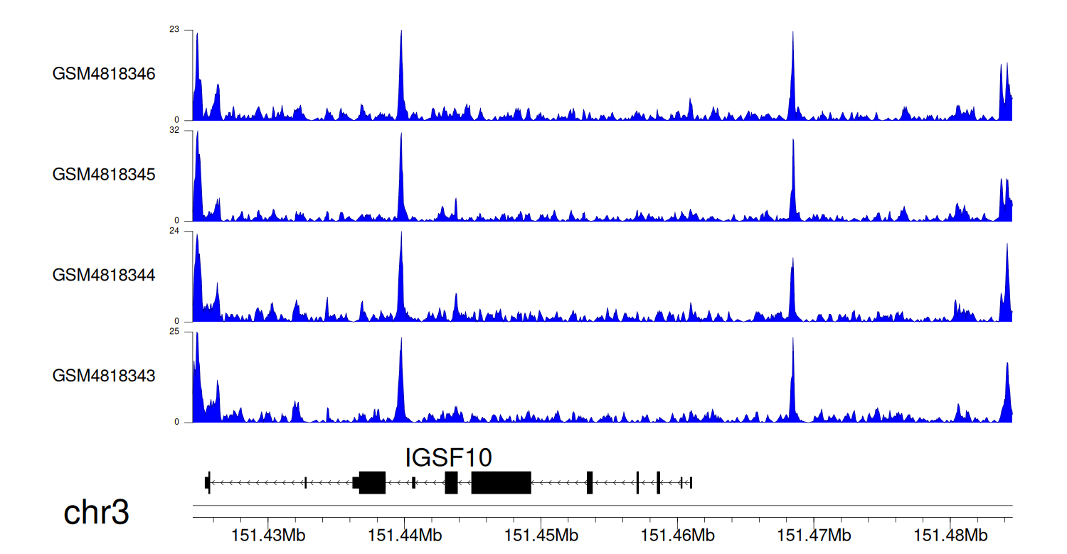 > Dataset: GSE131257 - IGSF10 peak across samples