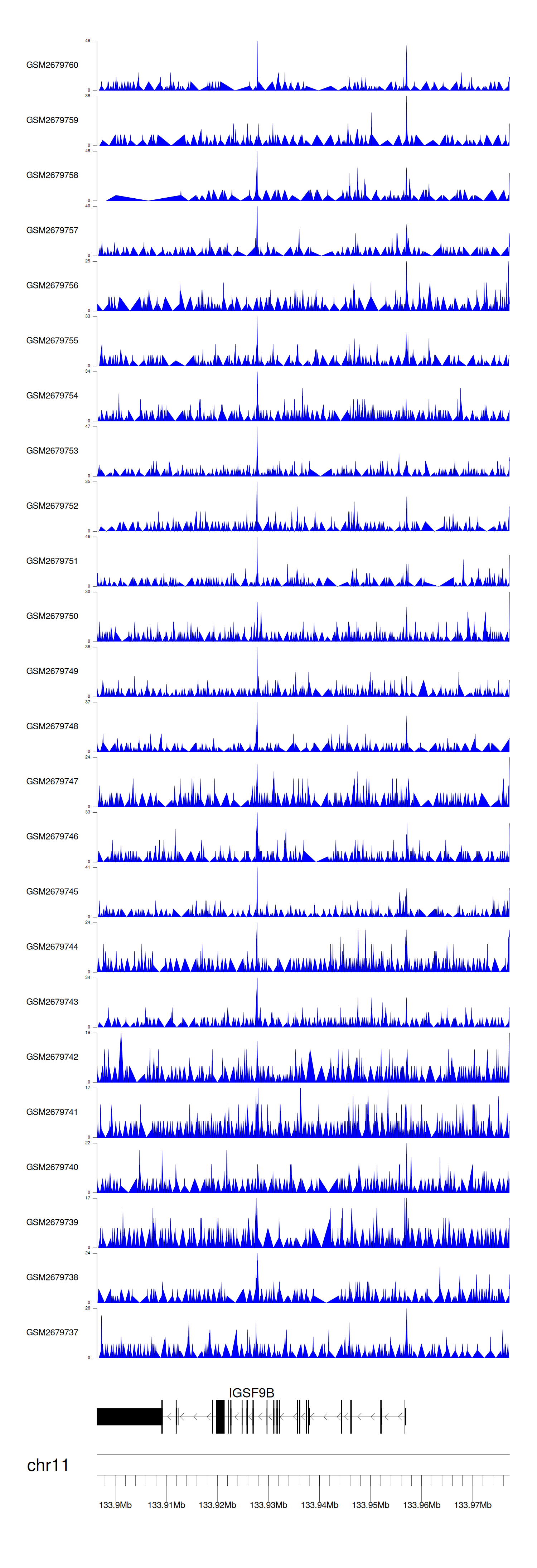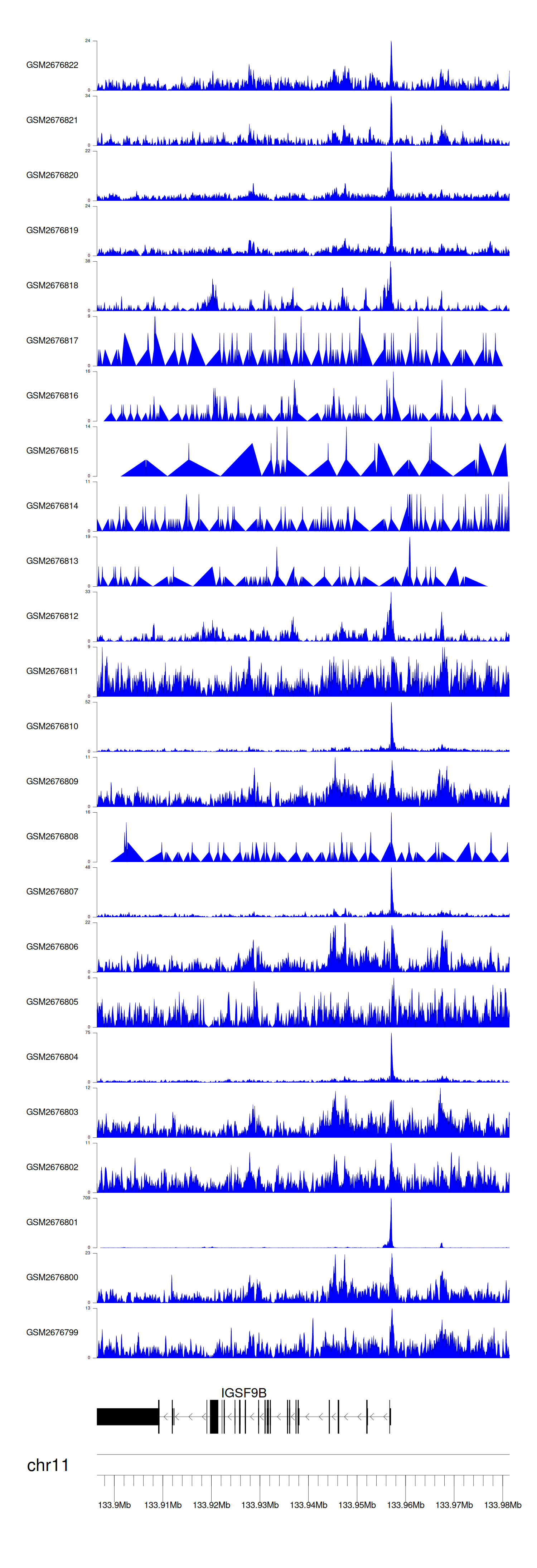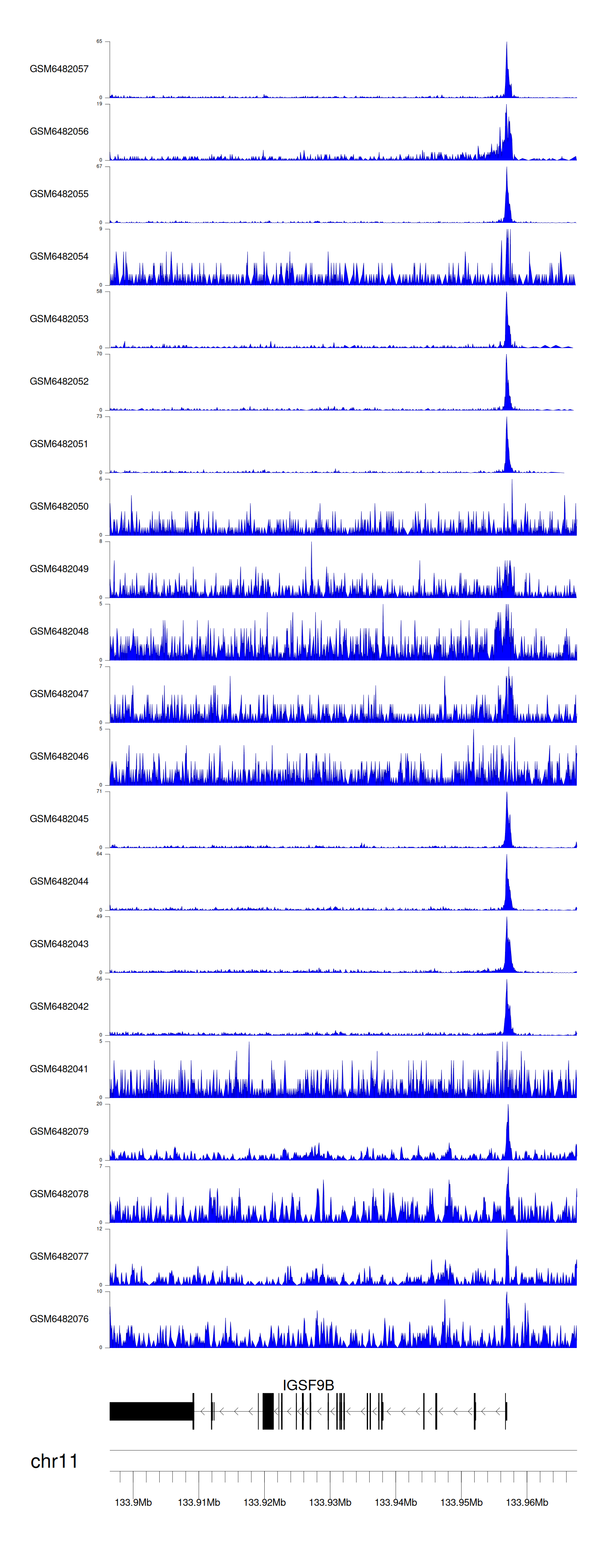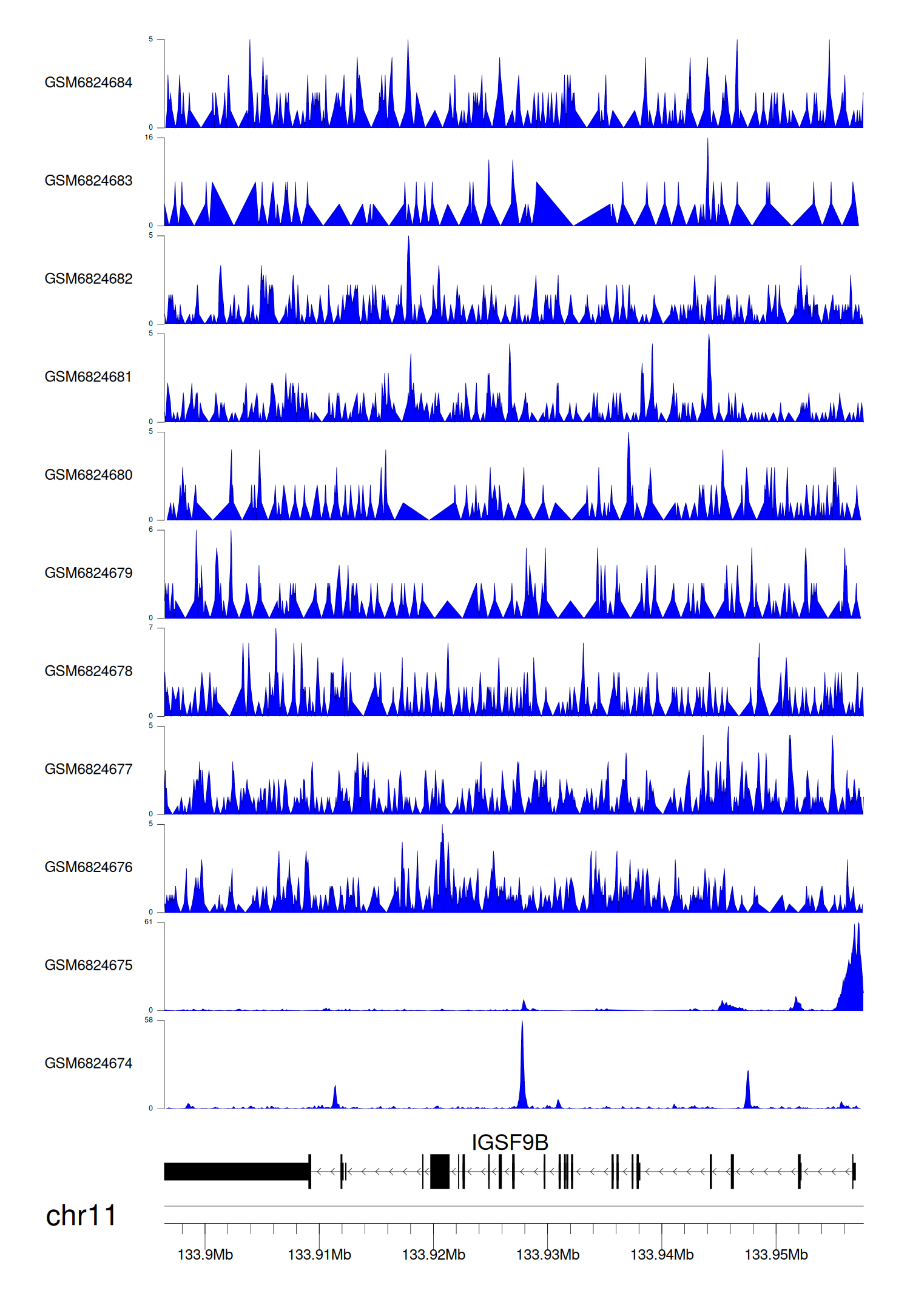 > Dataset: GSE211651 - IGSF9B peak across samples