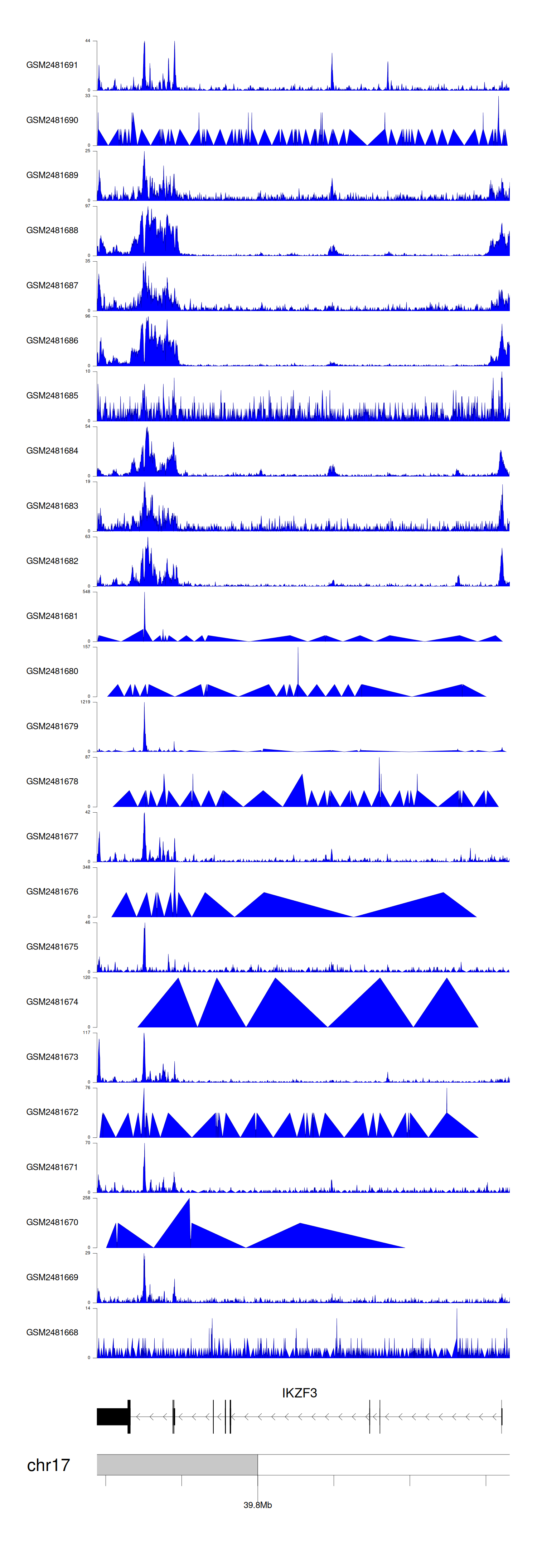 > Dataset: GSE94732 - IKZF3 peak across samples