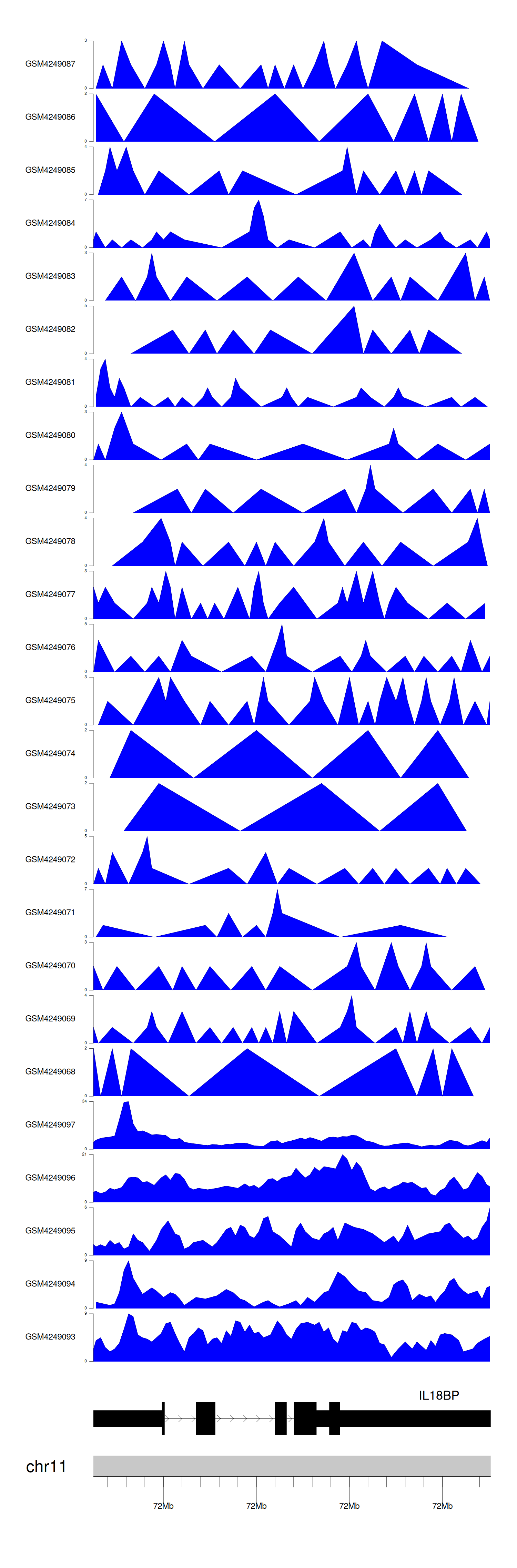 > Dataset: GSE143026 - IL18BP peak across samples
