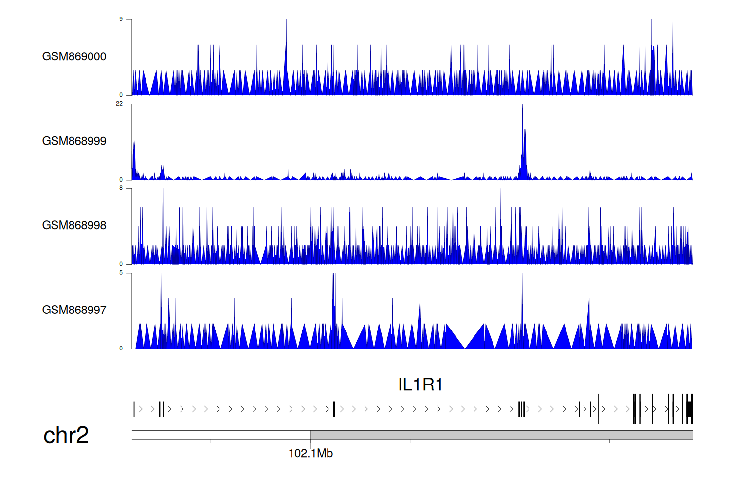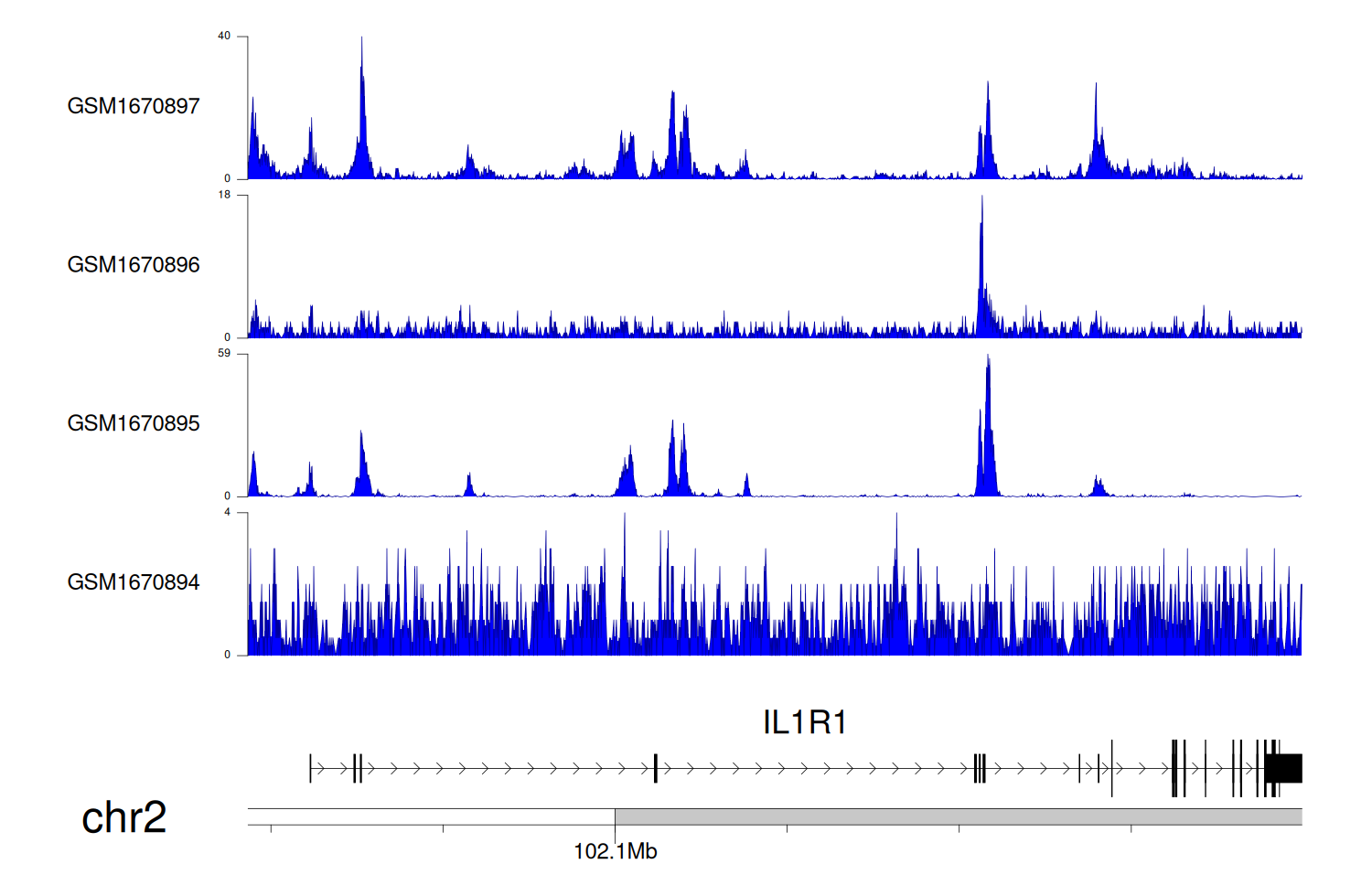> Dataset: GSE68402 - IL1R1 peak across samples